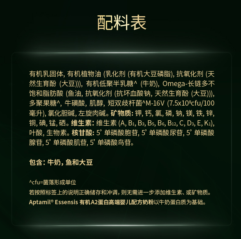 Aptamil 爱他美 Essensis奇迹绿罐有机A2婴儿奶粉1段 900g