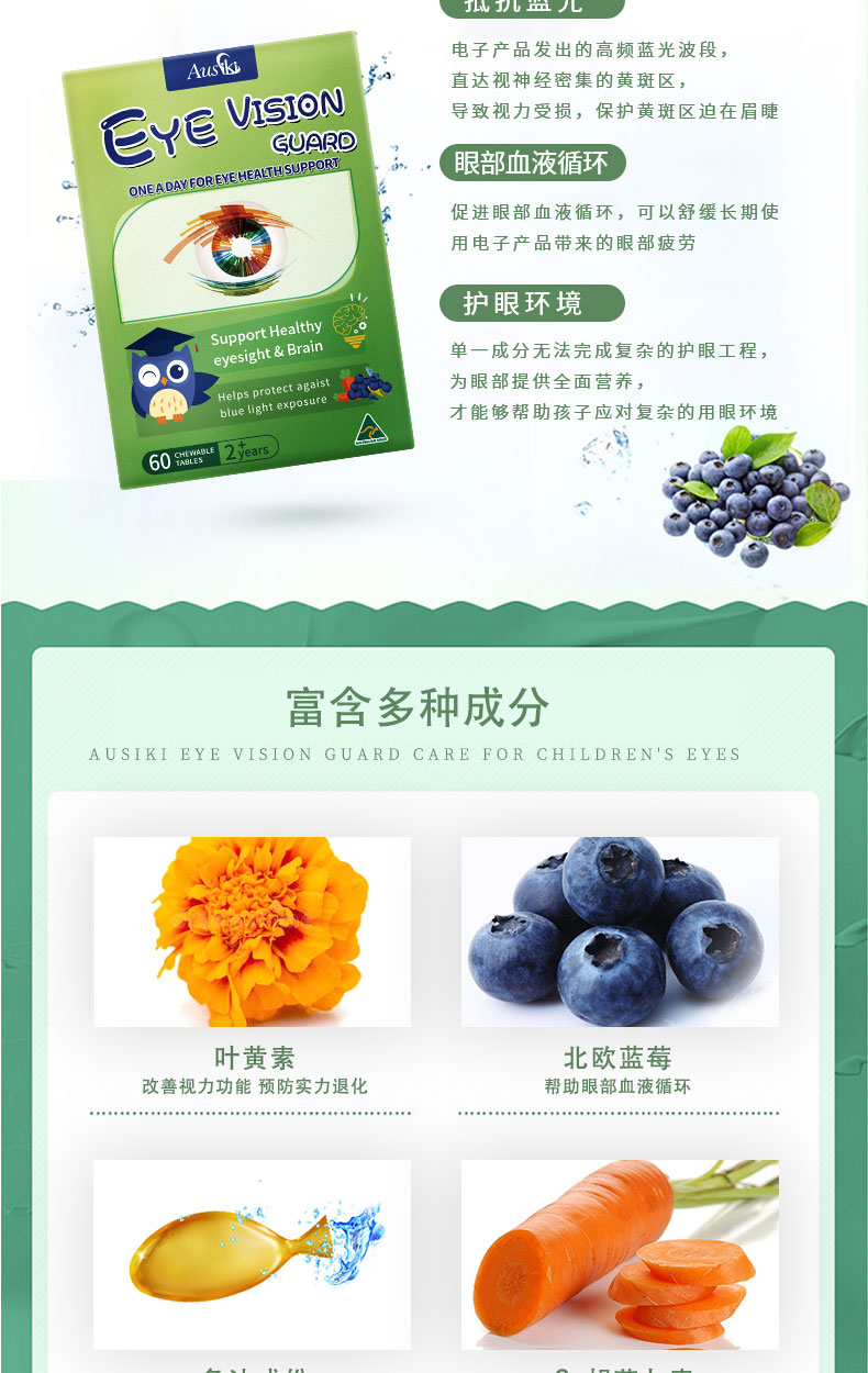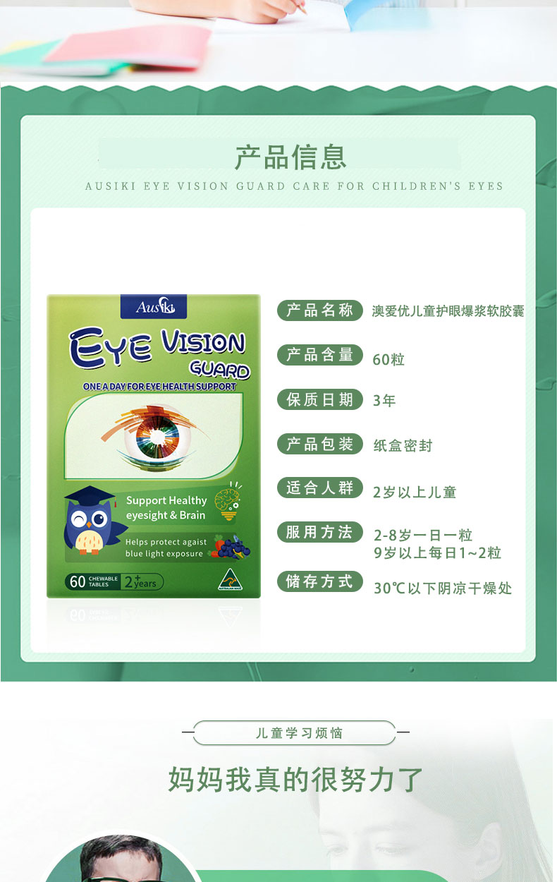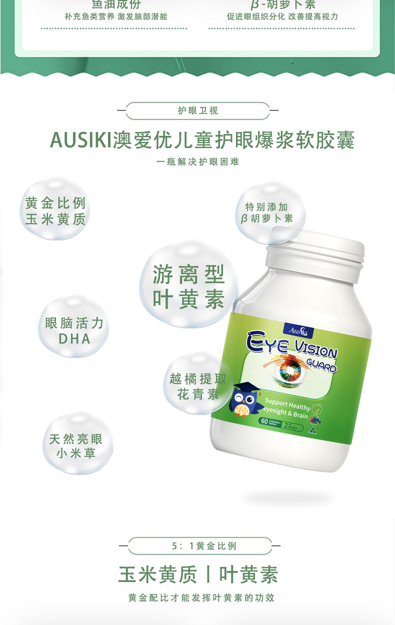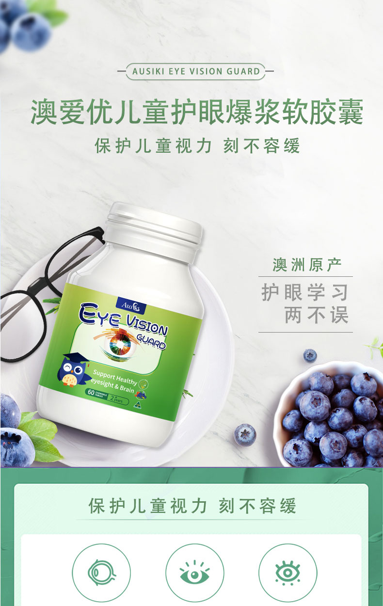 Ausiki 儿童爆浆护眼丸软胶囊 2岁+ 60粒