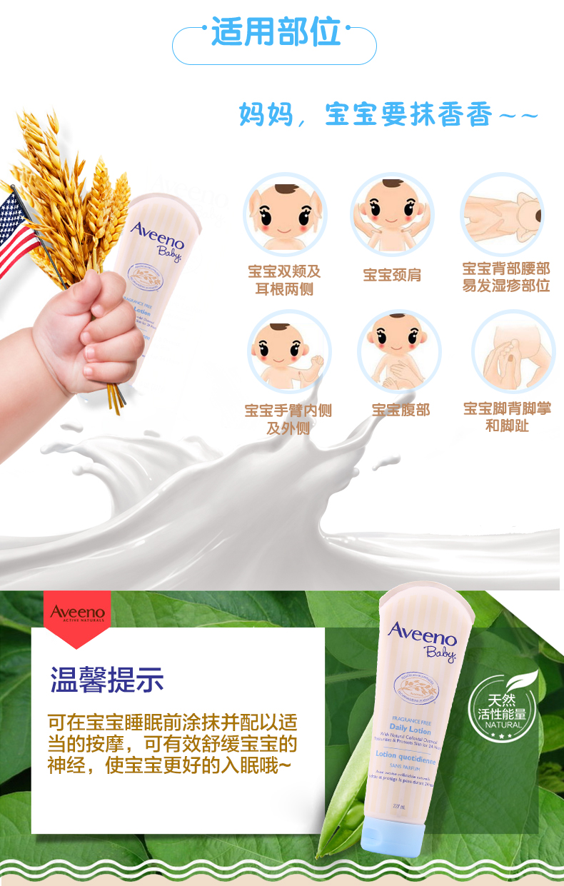 Aveeno 婴儿燕麦全天候润肤乳液 无香型润肤露  227g