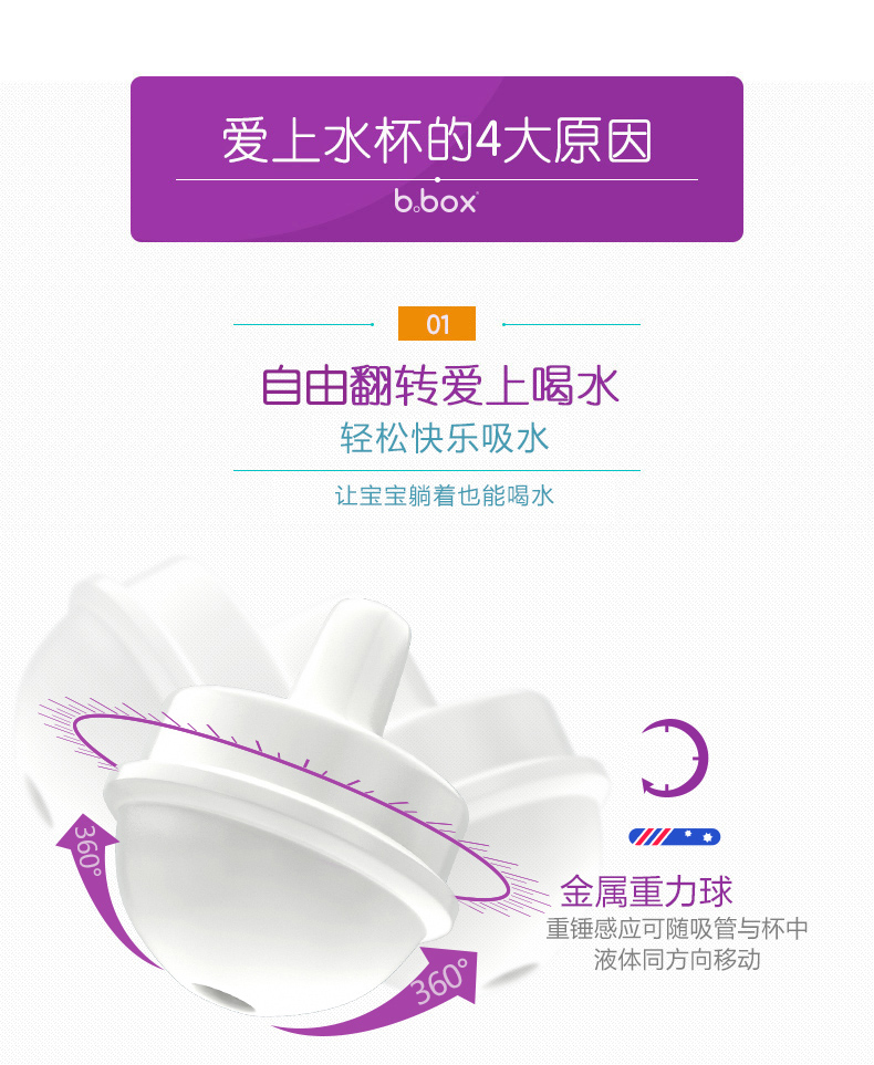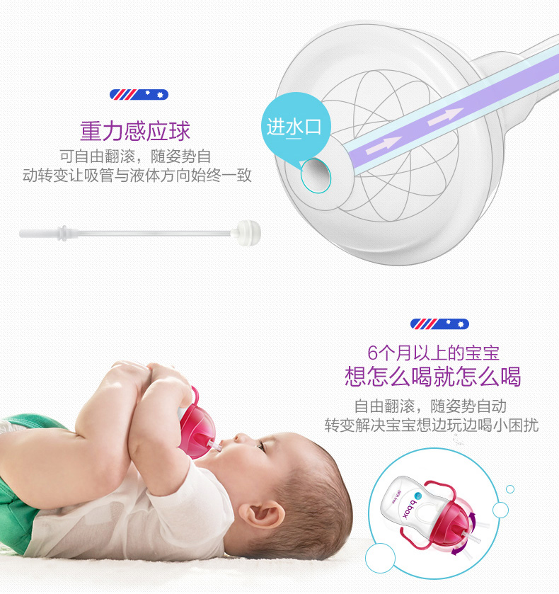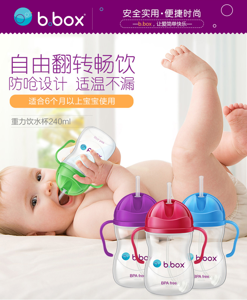 B.box 婴幼儿重力球吸管杯 防漏 240ml 水蓝色 (6个月以上)
