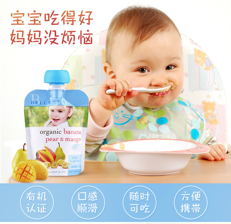 水果是宝宝身体健康和均衡饮食所必须的。贝拉米有机系列为新生婴儿到学龄前儿童提供全系列的有机食物。贝拉米的有机婴儿食物取自于当地农场最新鲜最美味的有机食材,做成了100%有机成分的健康食品。 100%有机谷物,添加铁元素,无糖,无添加剂,无色素, 无鸡蛋,无防腐剂。