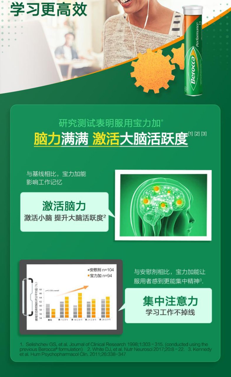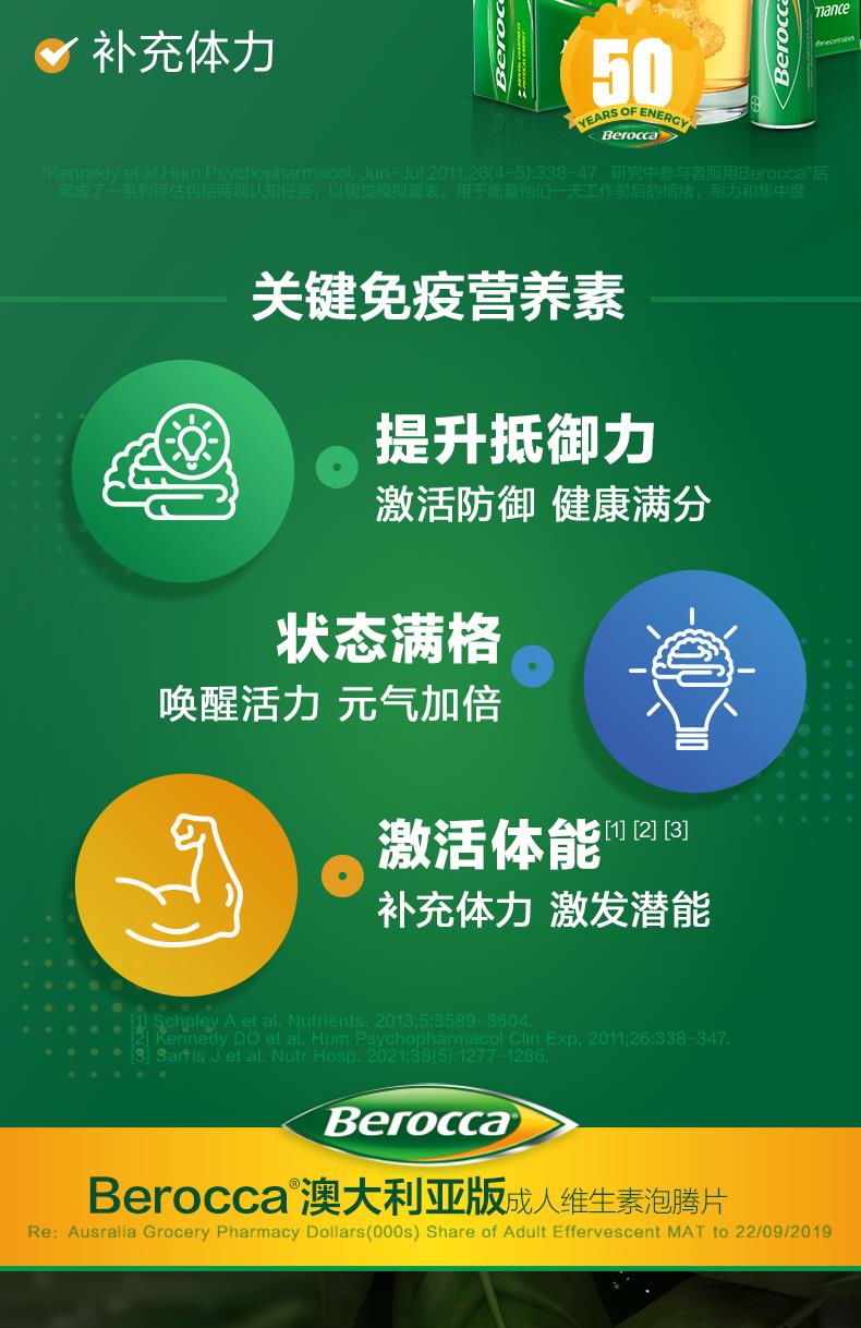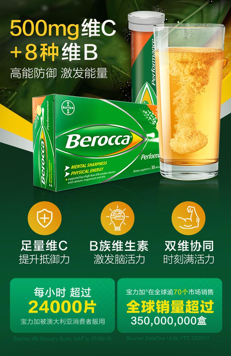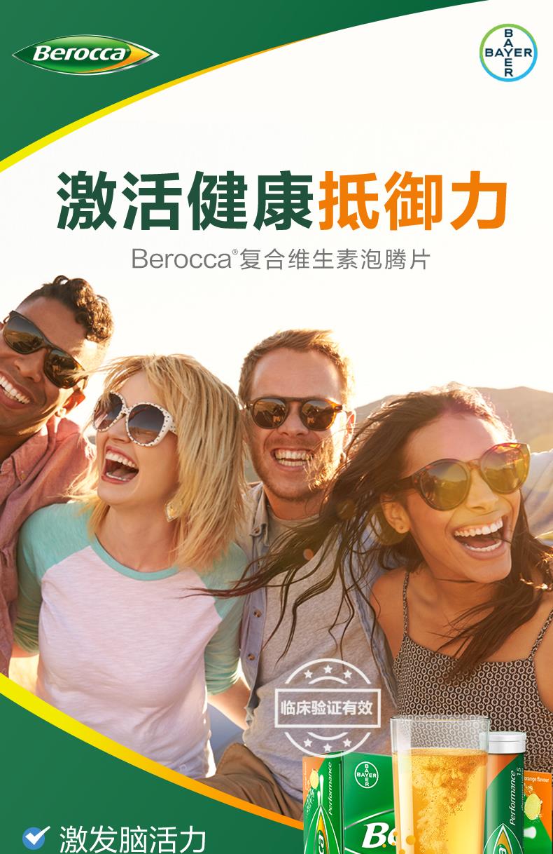 拜耳 Berocca 复合维生素能量泡腾片 橙子味45粒 补充维B维C