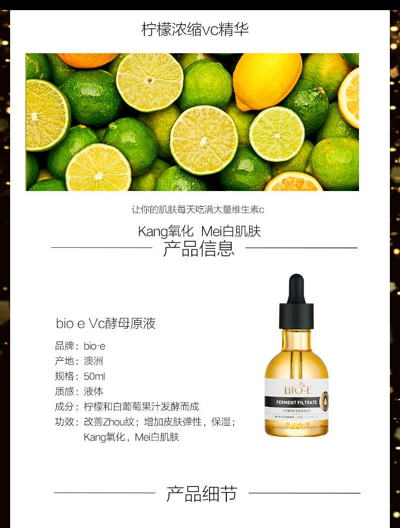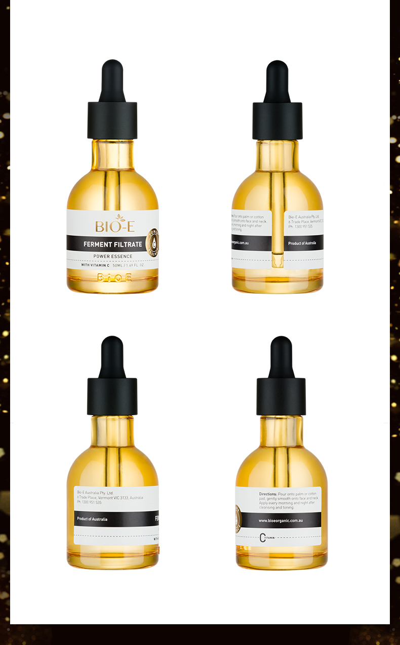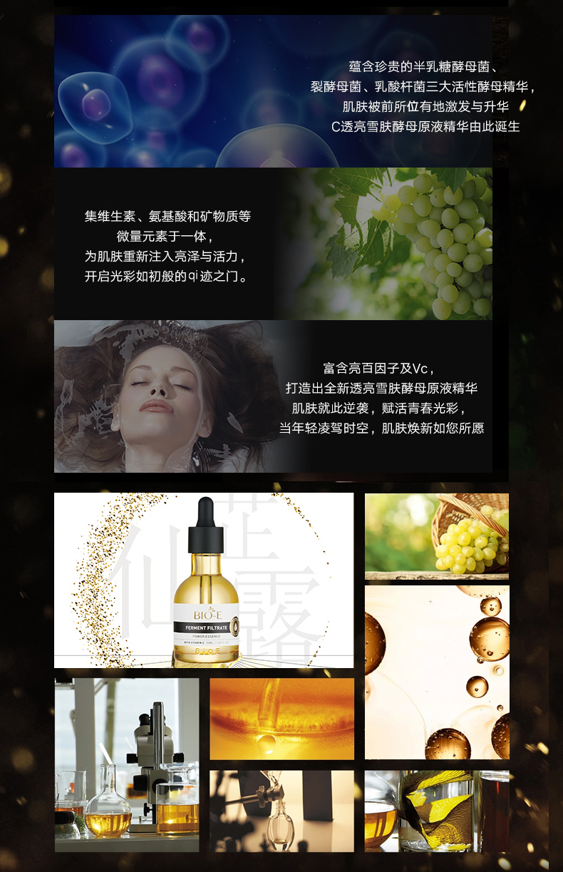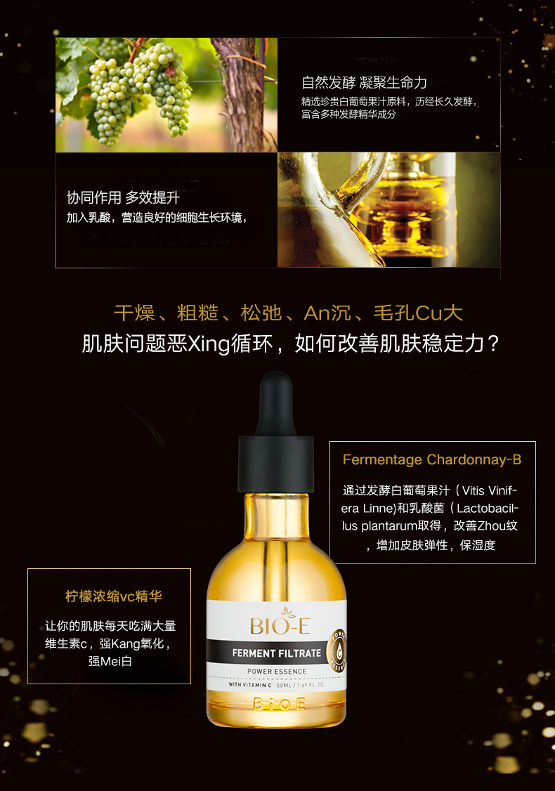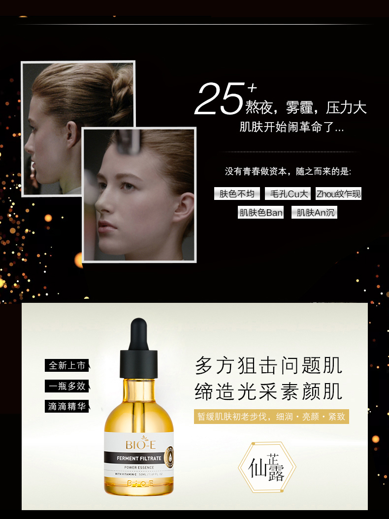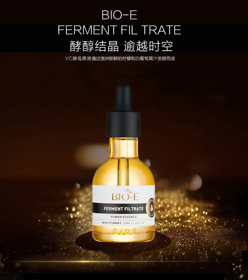 Bio-E酵母原液浓缩VC精华透亮雪肤补水紧致50ml. 增加皮肤弹性改善松弛与幼纹.