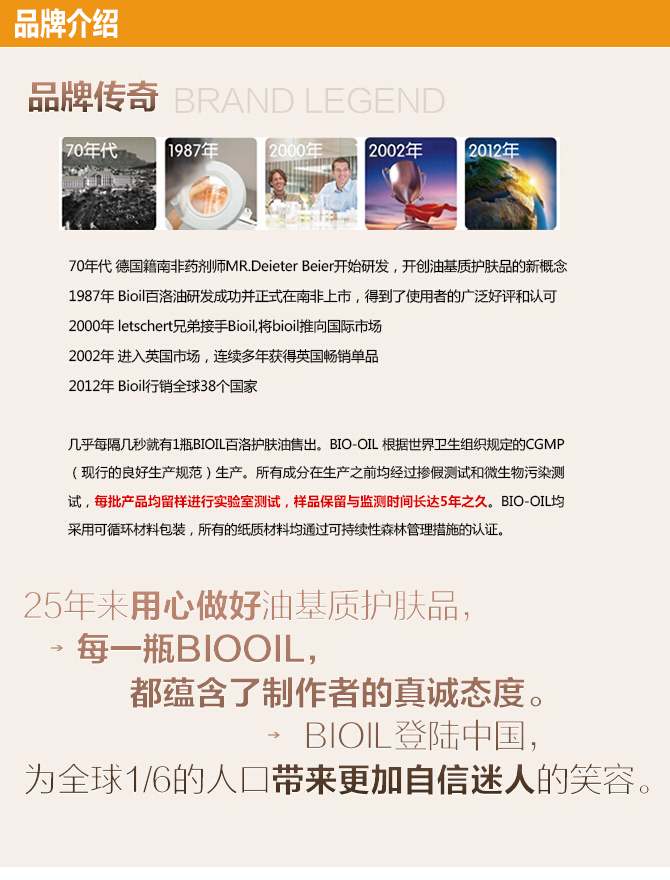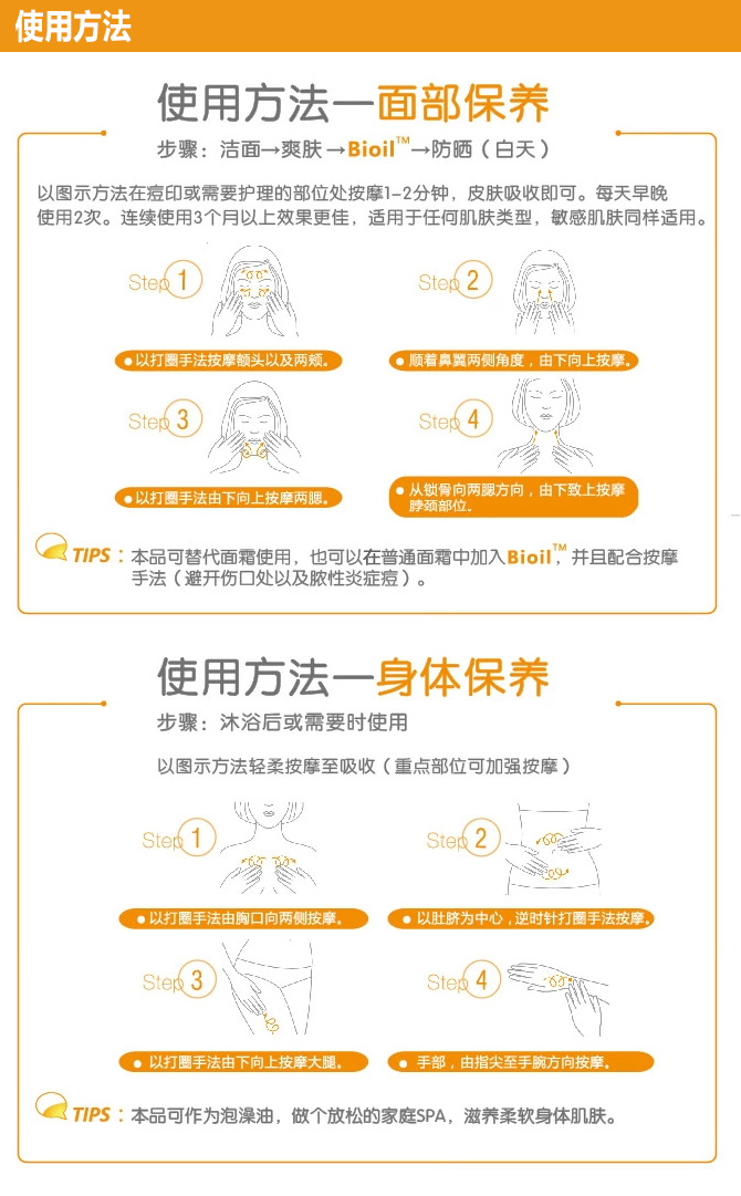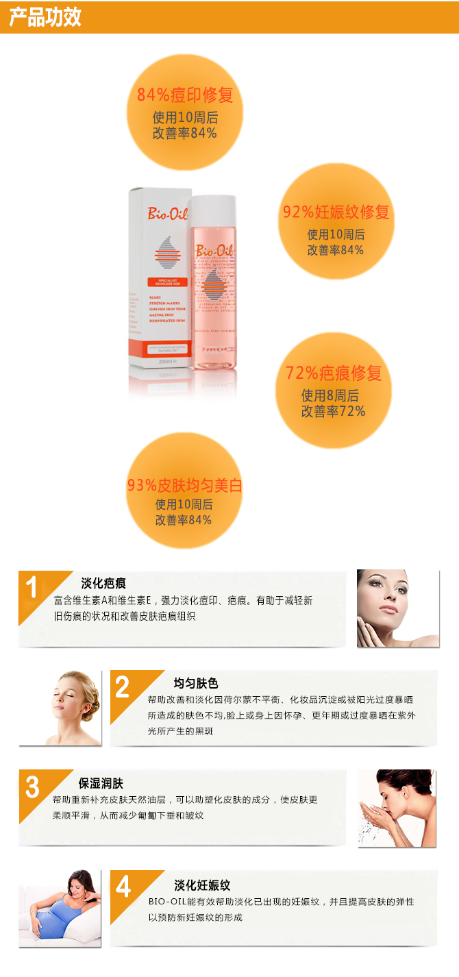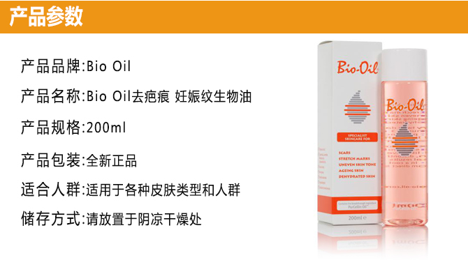Bio Oil 去疤痕妊娠纹生物油成分包含突破PurCellin油,维生素A和E,洋甘菊提取物和天然油脂的结合,是一种专业的护肤建议疤痕治疗,妊辰纹、肤色不均、衰老和脱水的皮肤。它是专为使用在脸上和身体上,有助于减少疤痕的外观新老伤疤。
