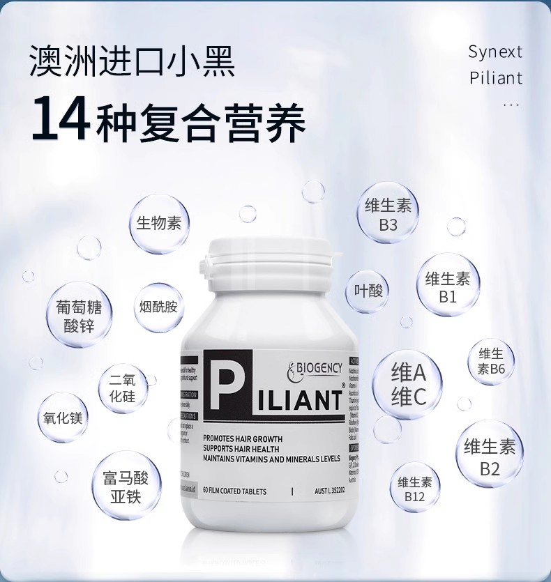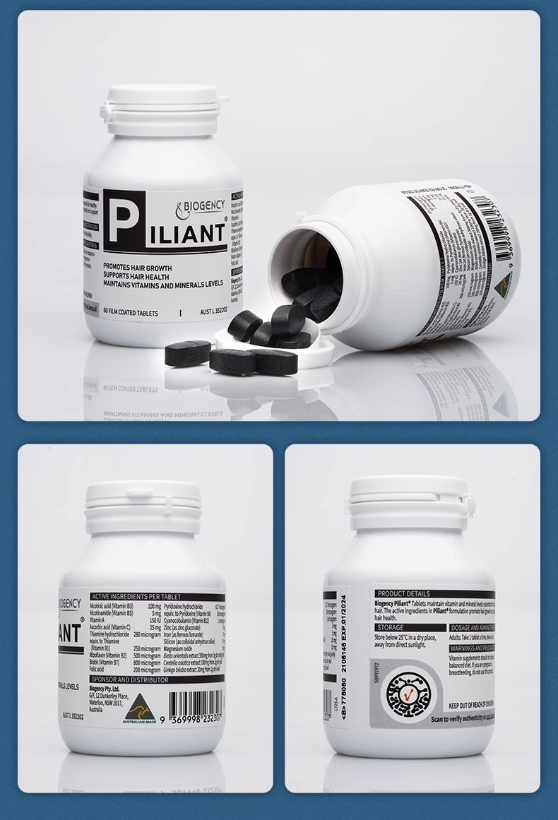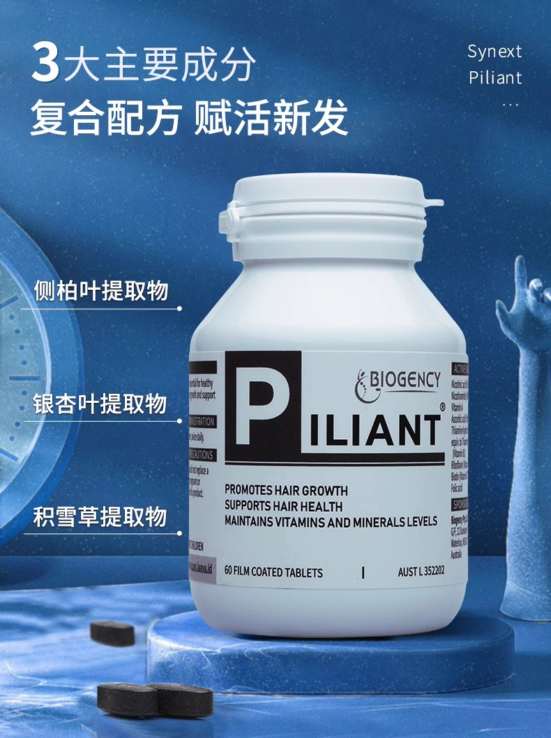 清仓特价🉐Biogency Piliant 积雪草侧柏银杏叶 固发养发片 复合营养素小黑瓶 60粒