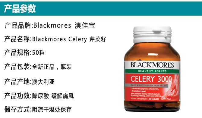| 产品名 | Blackmores 澳佳宝 芹菜籽缓解痛风/降尿酸 3000mg 50片 |