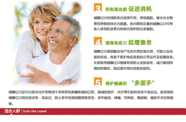 本产品保护心血管系统,维持健康的动脉和心肌功能。可以呵护您的健康预防改善心血管疾病,有助强化心脏机能,保持心脏健康。改善心肌代谢,减轻缺血对心肌的损伤。降低血管收缩压及舒张压力。是心脏病冠心病人的一款非常好的保健品。并且具有抗氧化功能,有助于改善肌肤。