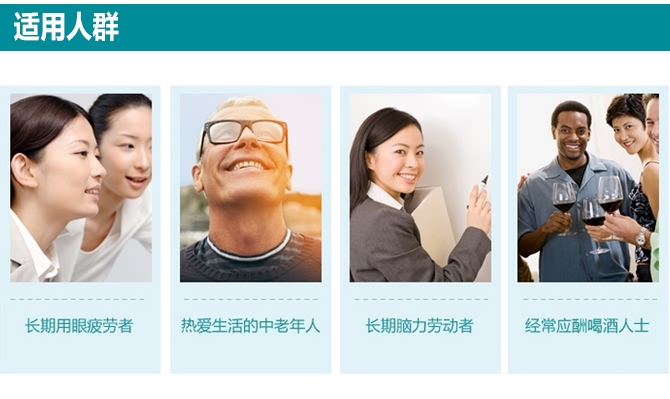 | 适用人群 | 长期用眼过度者,中老年人,长期脑力劳动者,经常应酬喝酒人士 |