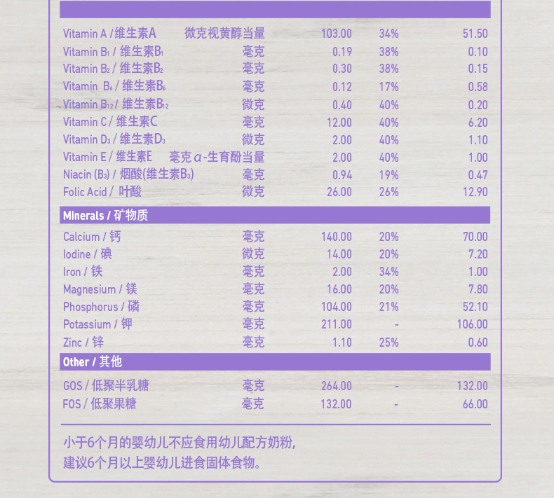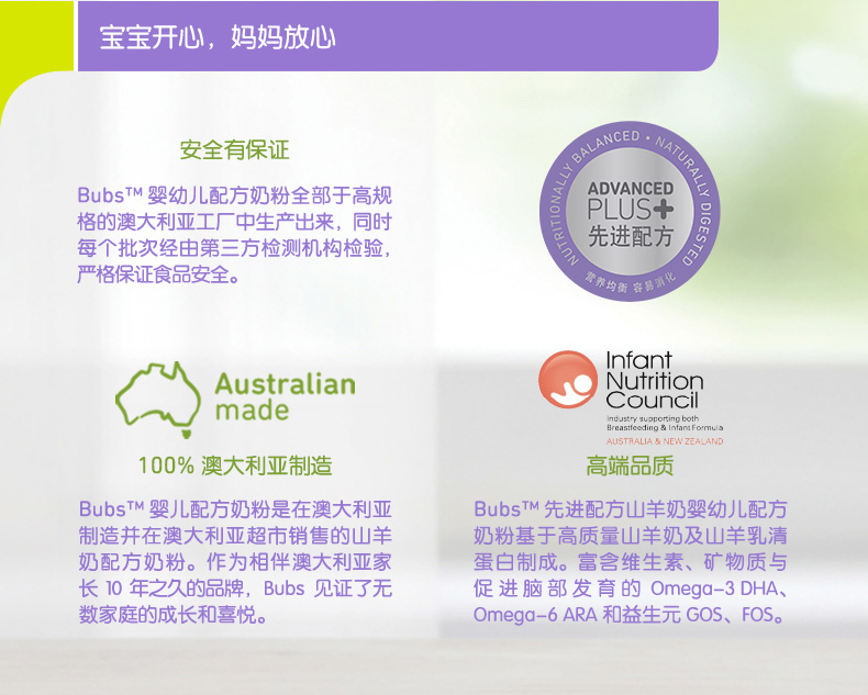 促进宝宝肠道健康、减低敏感,能满足宝宝在成长不同阶段的营养需求。