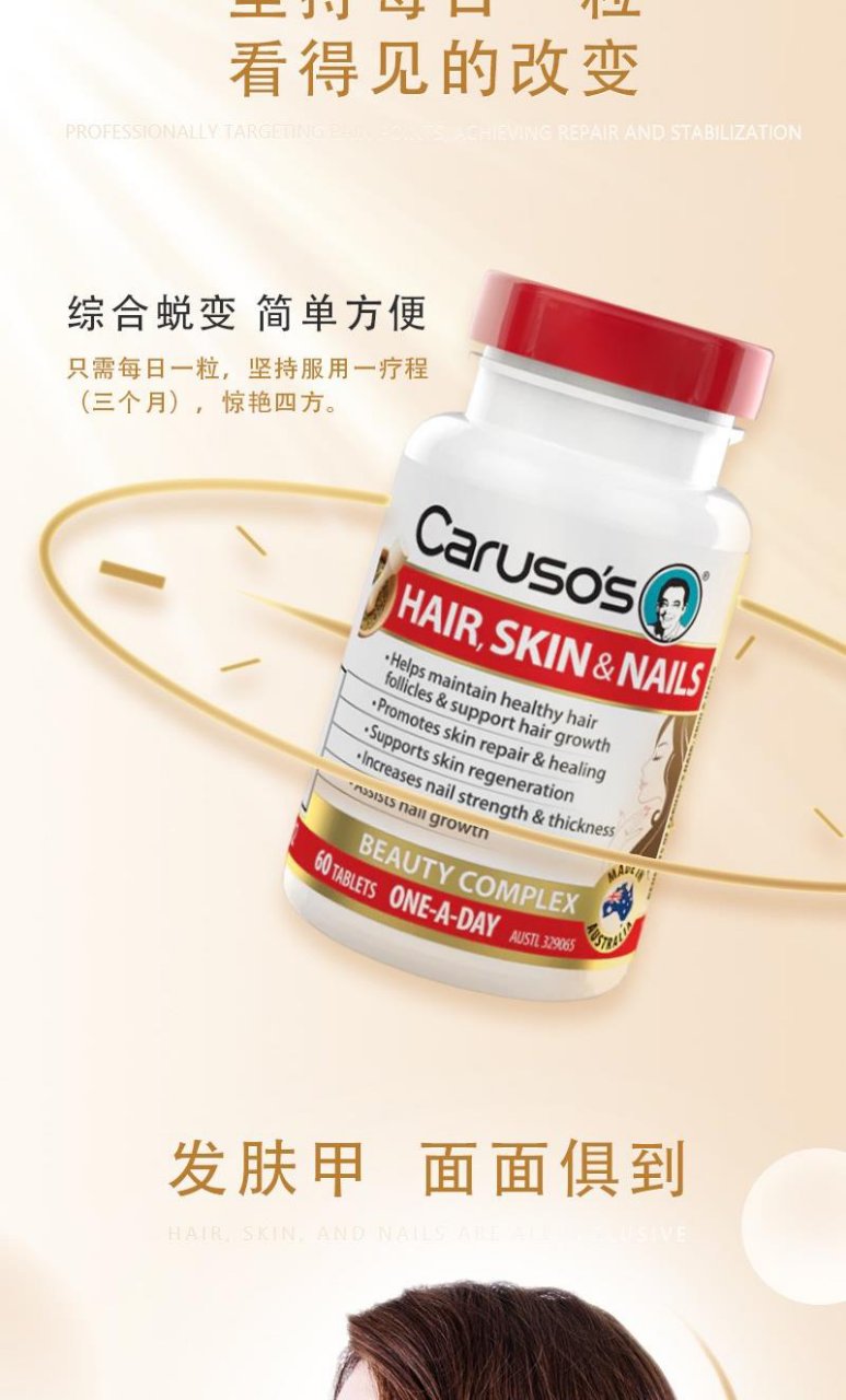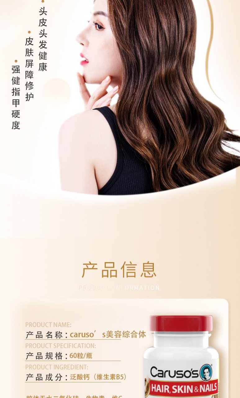 Caruso's Hair, Skin & Nails 60 tabs Caruso's 卡鲁索 胶原蛋白片 60 片