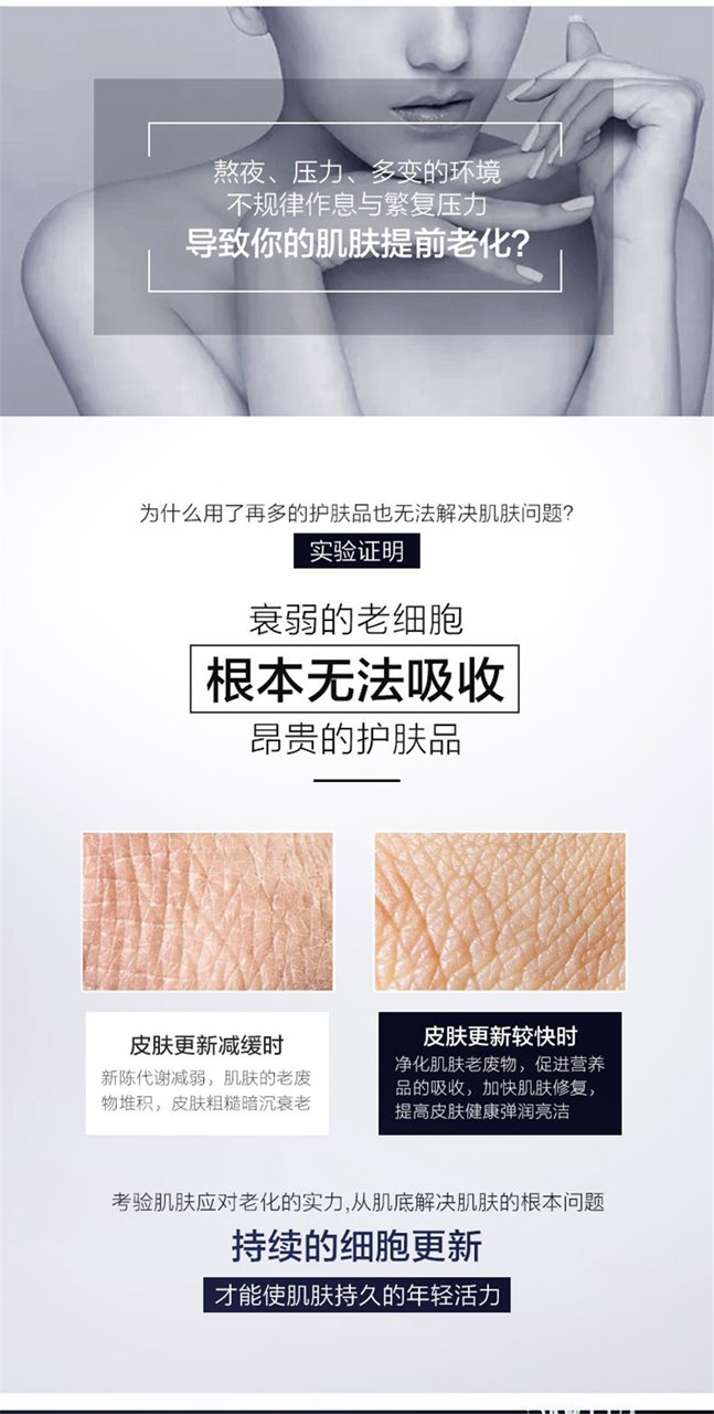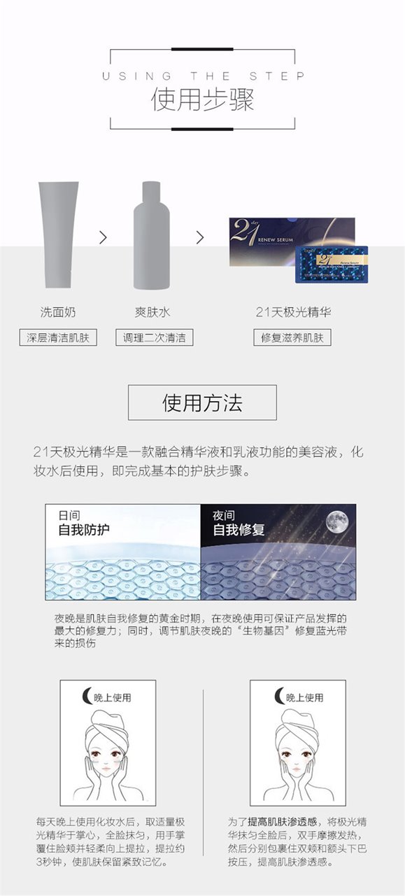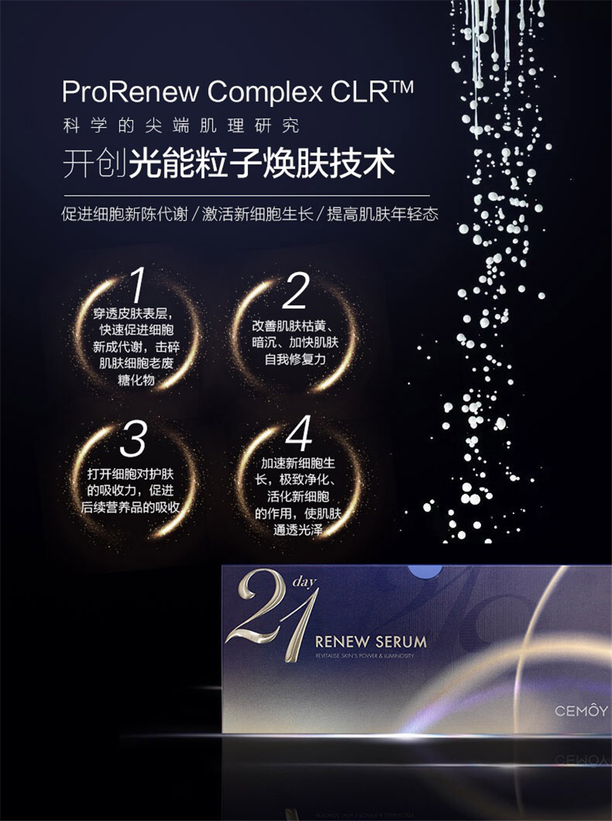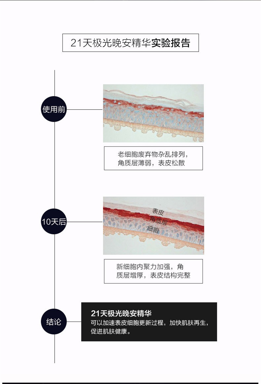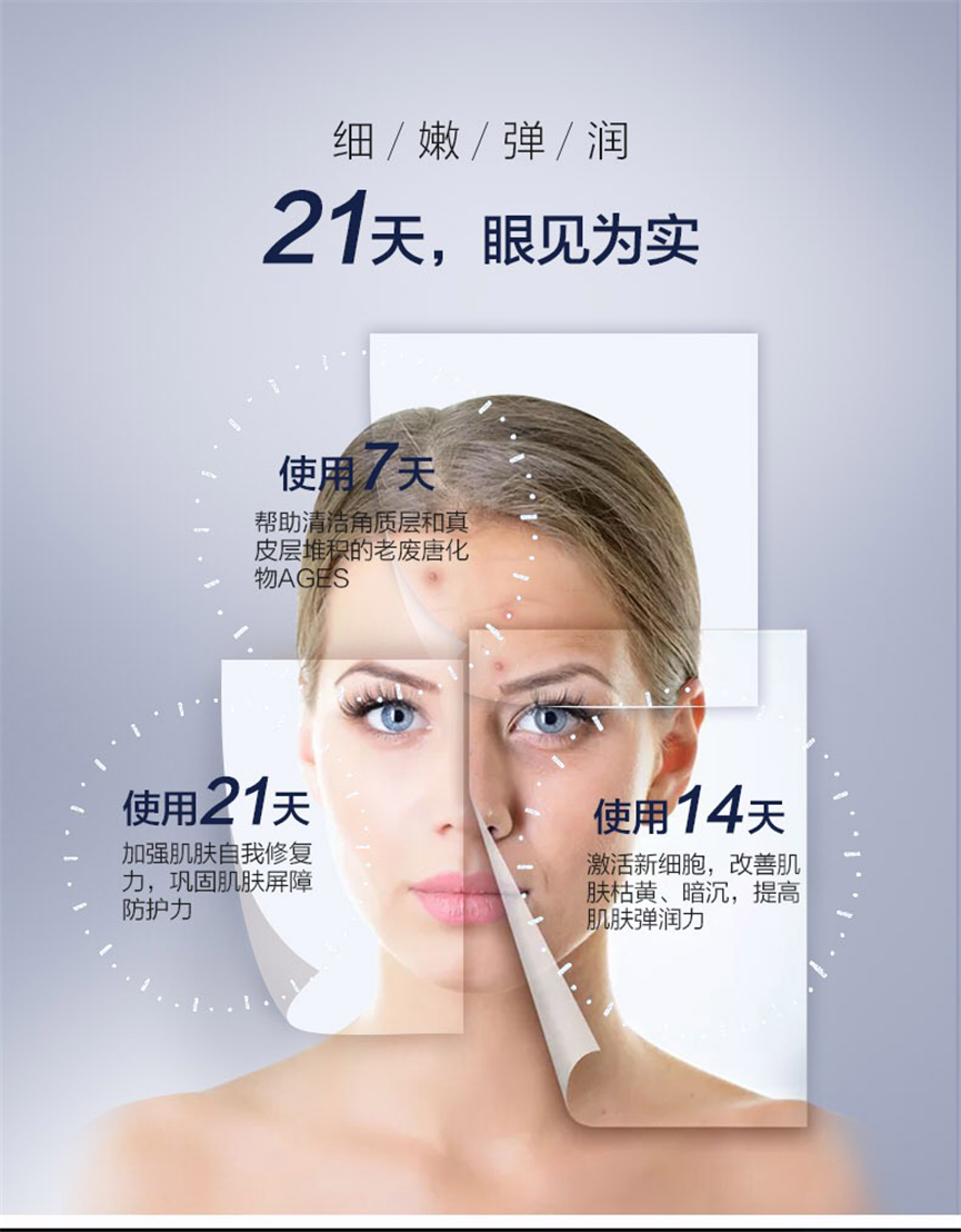 ○ 持续平衡细胞代谢更新,加速细胞周期循环,21天完成肌理重塑,肌肤呈现由内而外的饱满、通透、焕白。