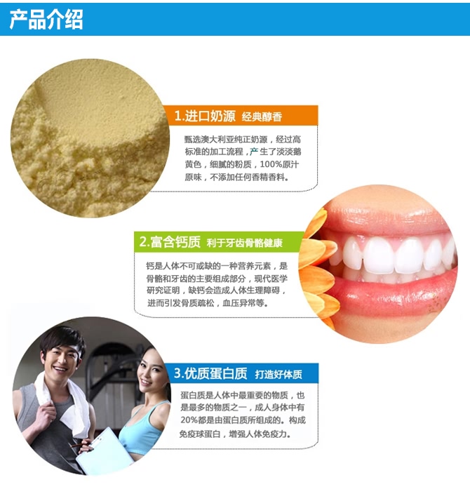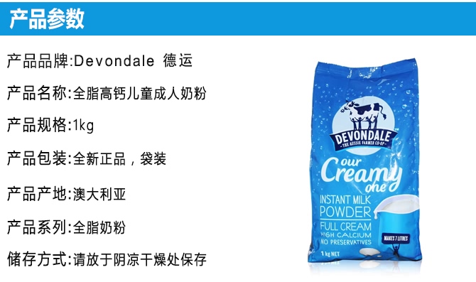 本产品来自澳大利亚天然牧场,奶粉口感纯正,天然牛奶,不含任何食品添加剂和防腐剂,富含钙质和蛋白质。全脂口感更好。