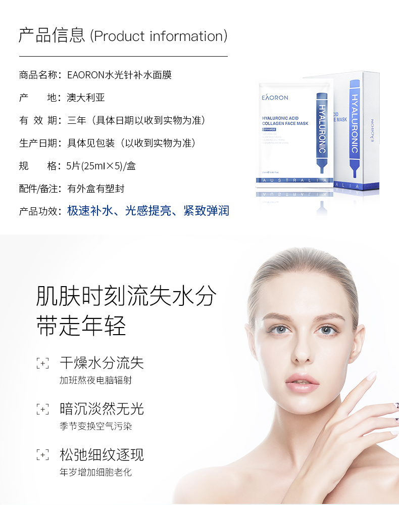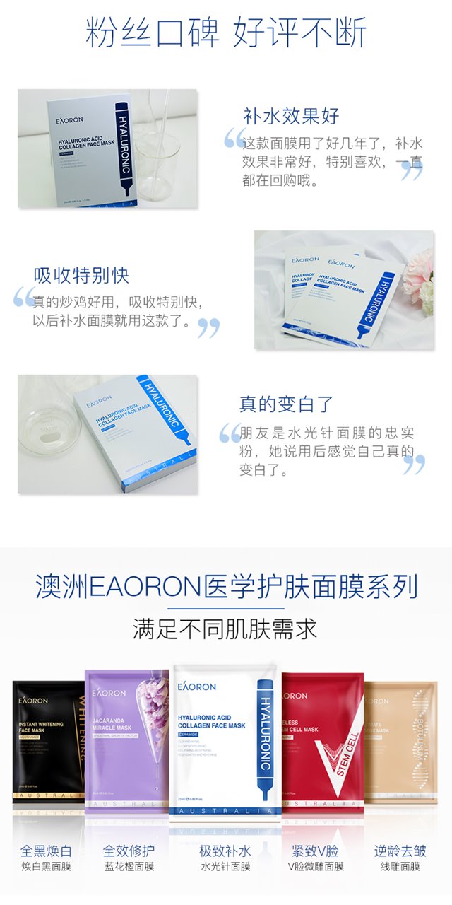 EAORON--水光针面膜(白色)补水 1盒5片