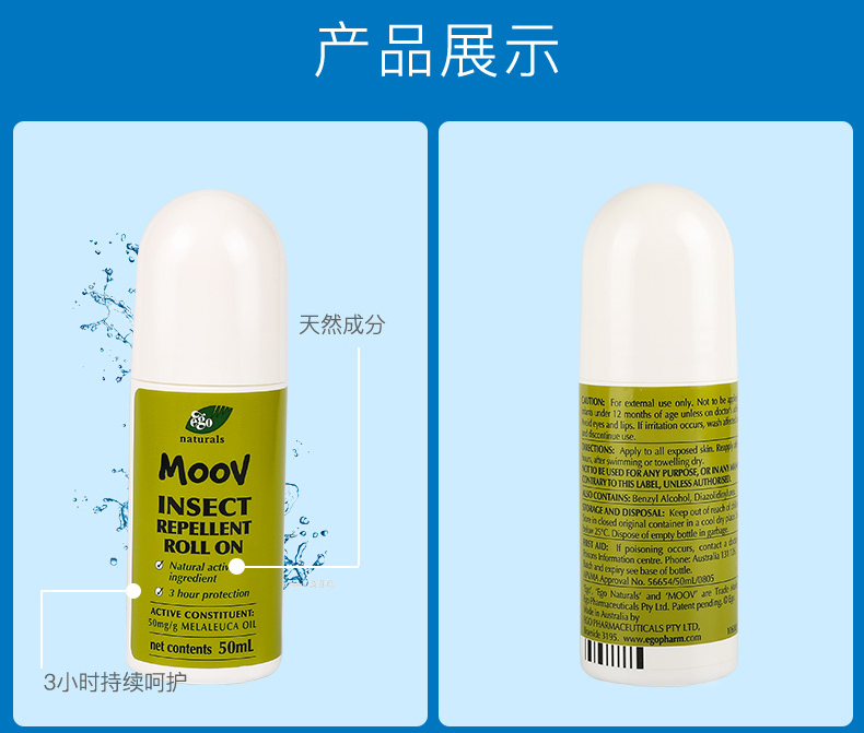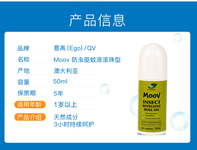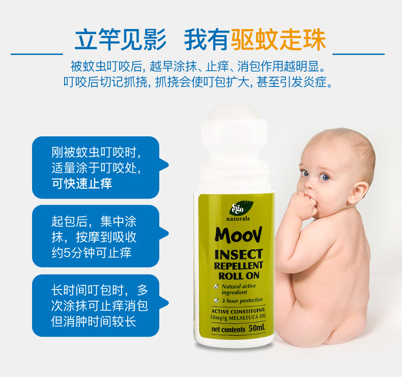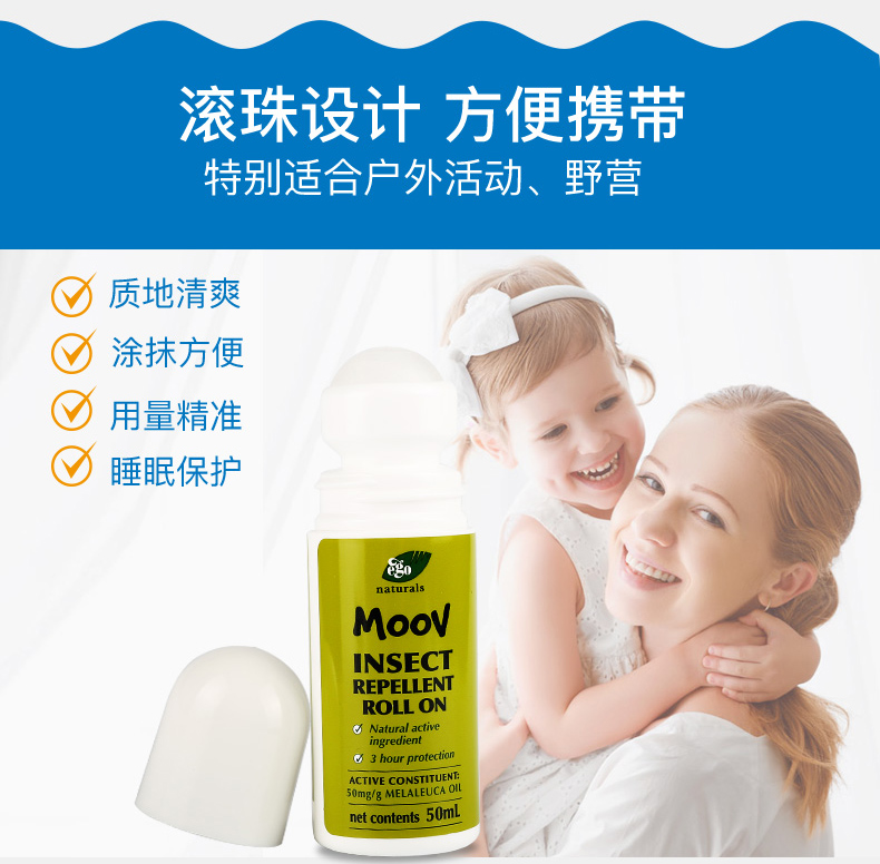 Ego Moov系列的驱虫用品都不含DEET(杀虫剂),所以更安全有效的保护宝宝和全家人的健康。以萃取草本植物油为基础的配方,驱蚊效果显著,高效便捷,是居家旅行必备良品之一。