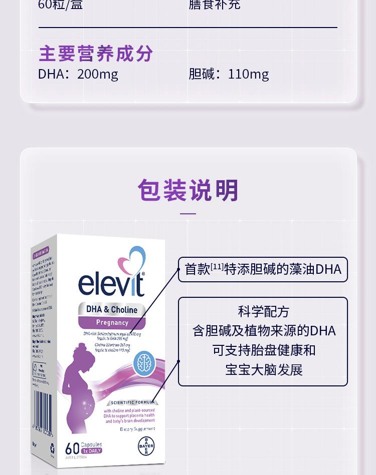 Elevit 爱乐维 孕妇DHA胆碱胶囊 60粒