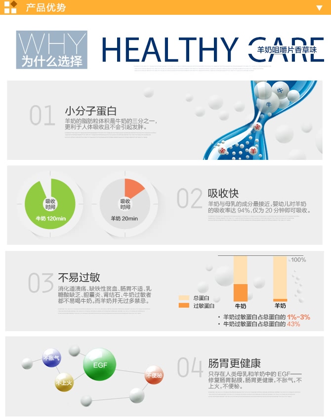 | 功效 | 本品添加丰富钙质,令儿童发育正常,强健骨骼。对孕妇、营养不良者,能补血补身,并能美容养颜及护肤,可迅速补充营养,增强体力坚固骨骼,对于牛奶过敏者尤为适合。羊奶的脂肪粒子更小,更容易吸收。 |