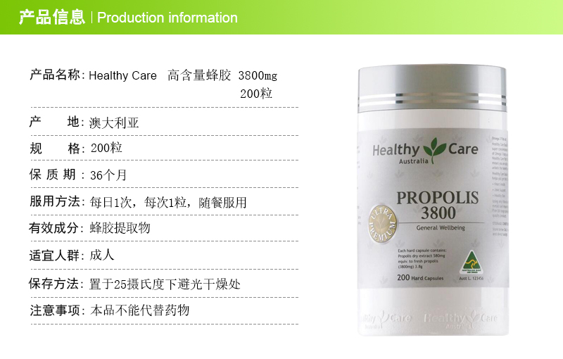 Healthy Care 高浓度黑蜂胶3800mg 200粒