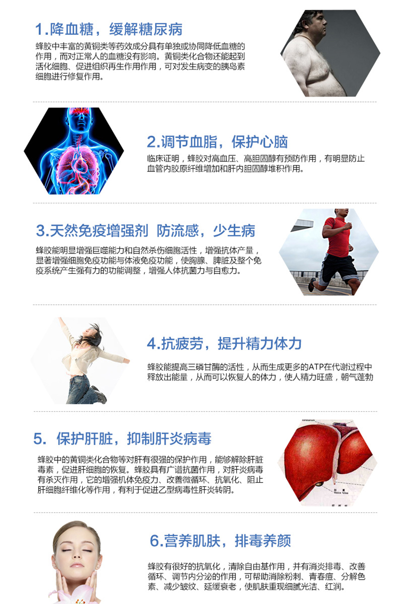 HC蜂胶新款,含量高达3800mg,吃一粒相当于别人吃普通款2000mg的两粒,蜂胶所含有的丰富而独特的生物活性物质,使其具有抗菌、消炎、止痒、抗氧化、增强免疫、降血糖、降血脂等多种功能,对人体有着广泛的医疗、保健作用!