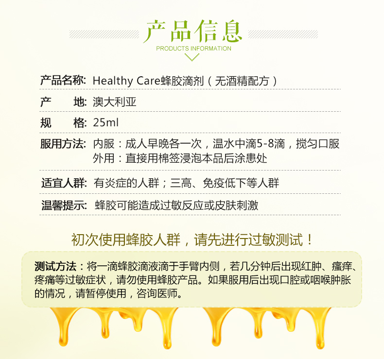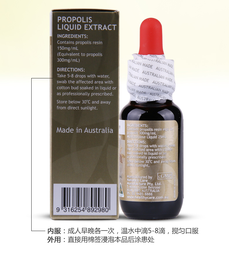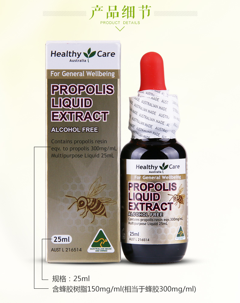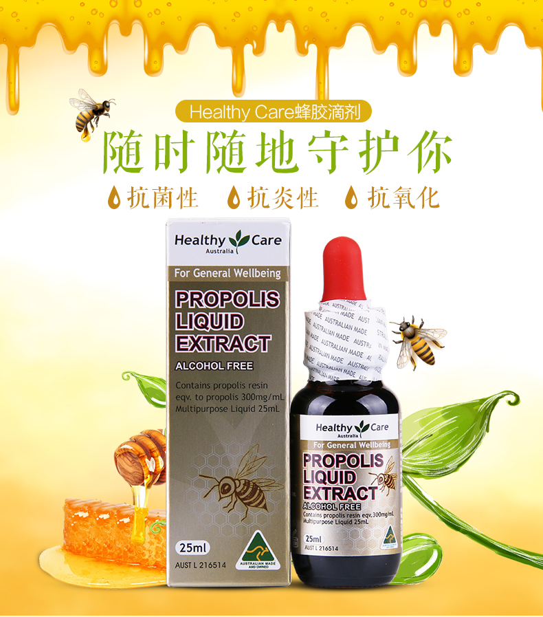 Healthy Care蜂胶滴液是天然蜂胶,特别适宜国内的雾霾天气,和长期抽烟饮酒造成的咽喉和肠胃不适。
