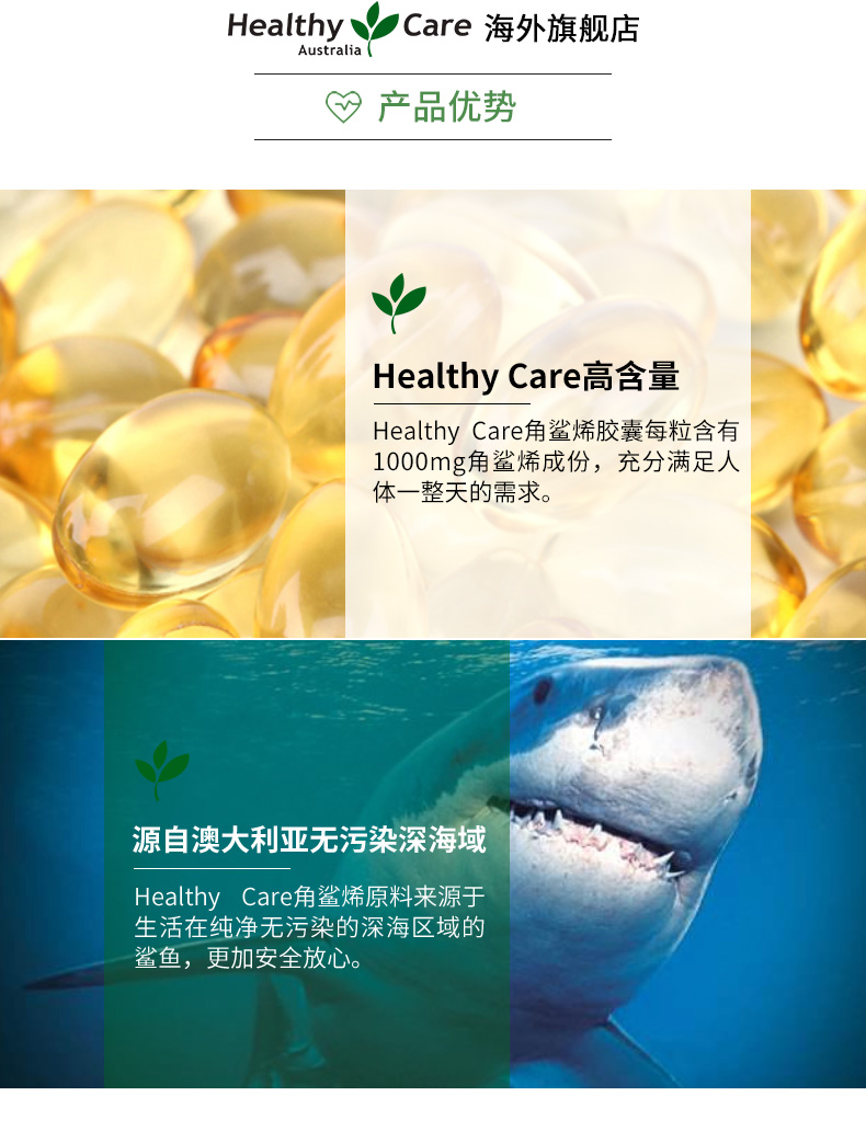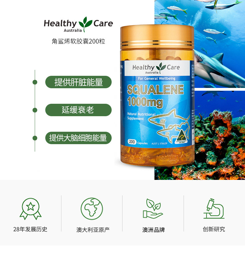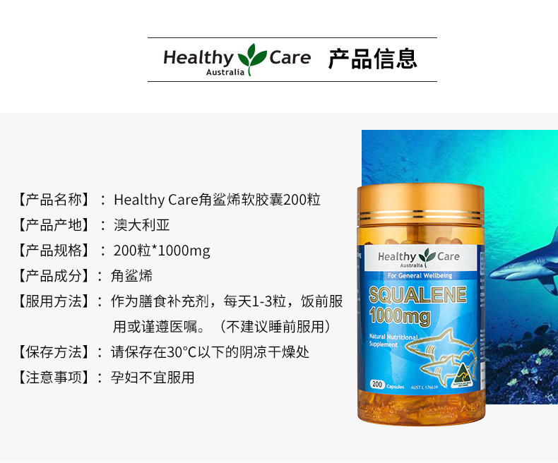 | 产品名 | Healthy Care 澳洲角鲨烯软胶囊 200粒 |