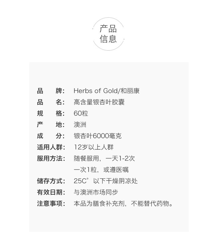银杏叶提取物 120 毫克 源自干叶 最少 6 克