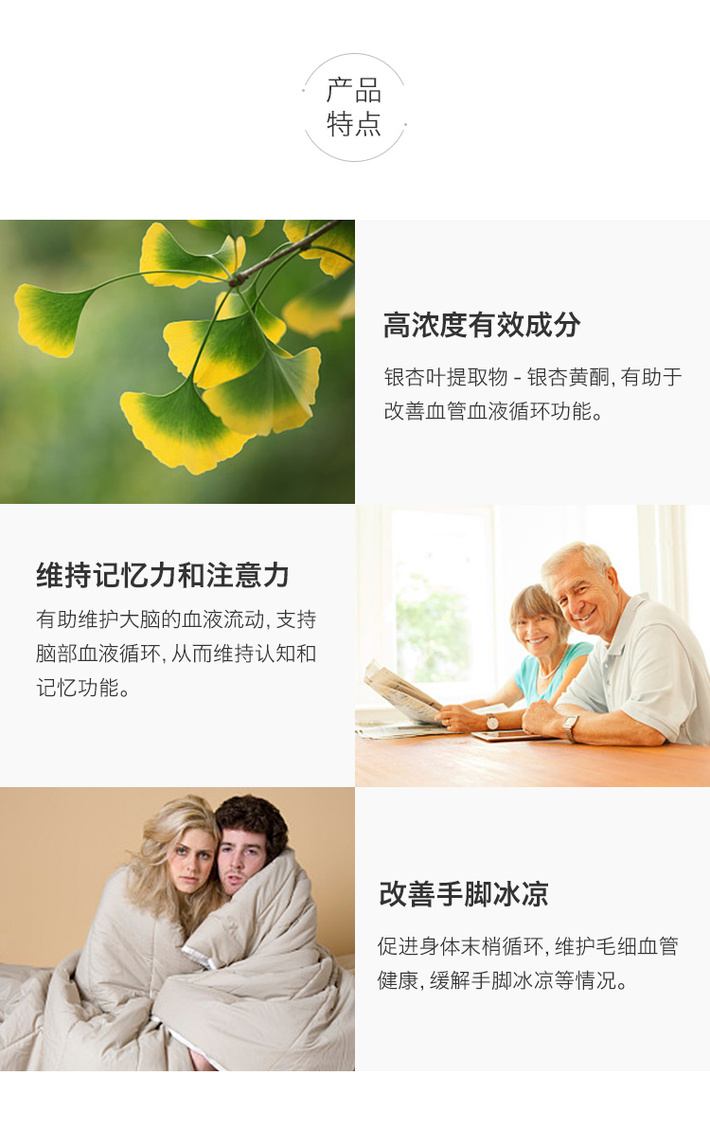 - 银杏维持健康的血液循环,并支持身体周边区域的血液循环,包括腿、手和脚。
