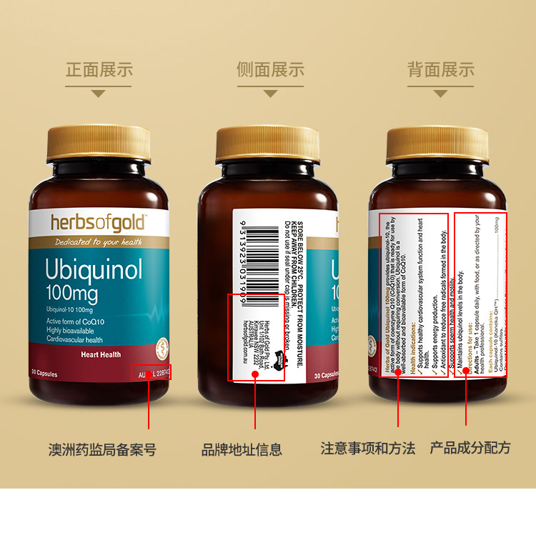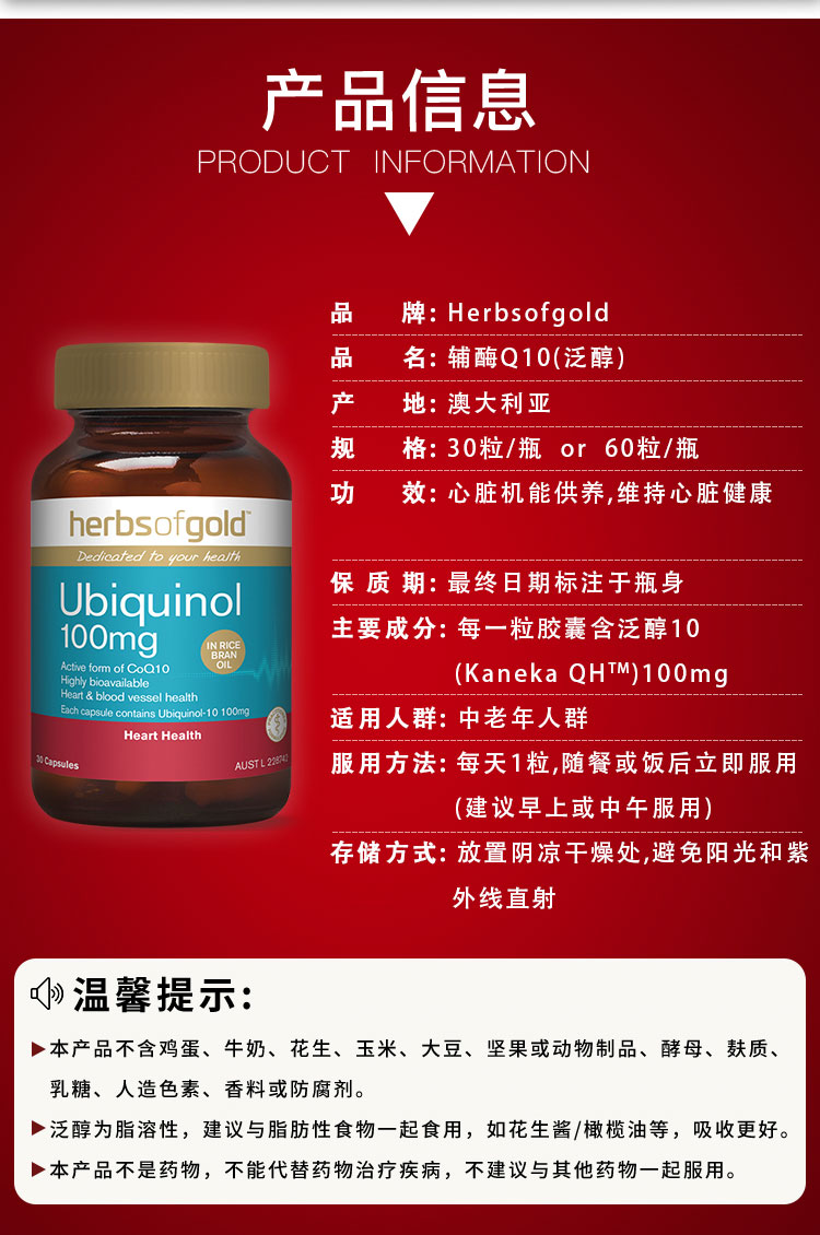 Herbs of Gold 泛醇150mg(活性辅酶Q10)胶囊 60粒