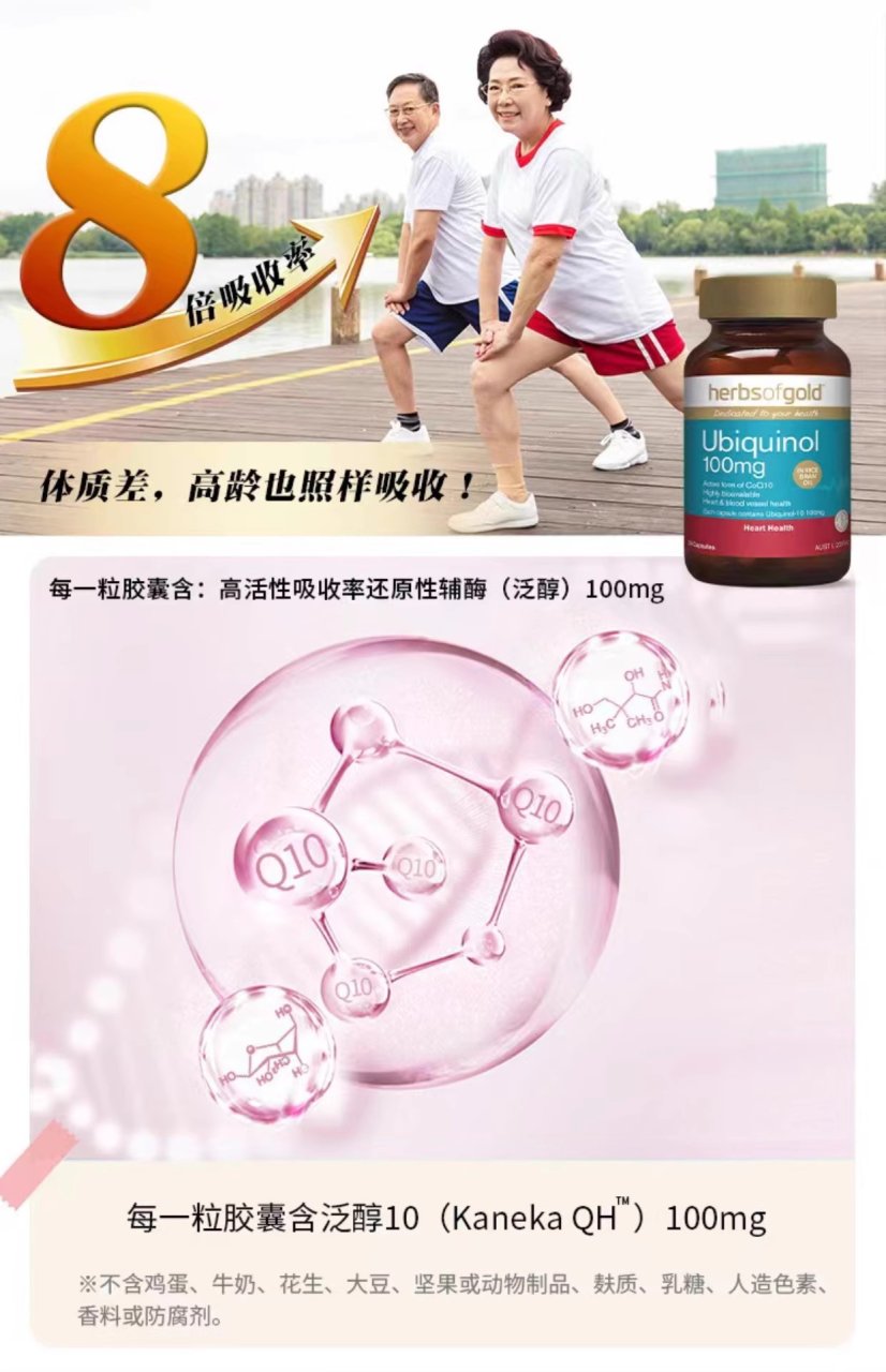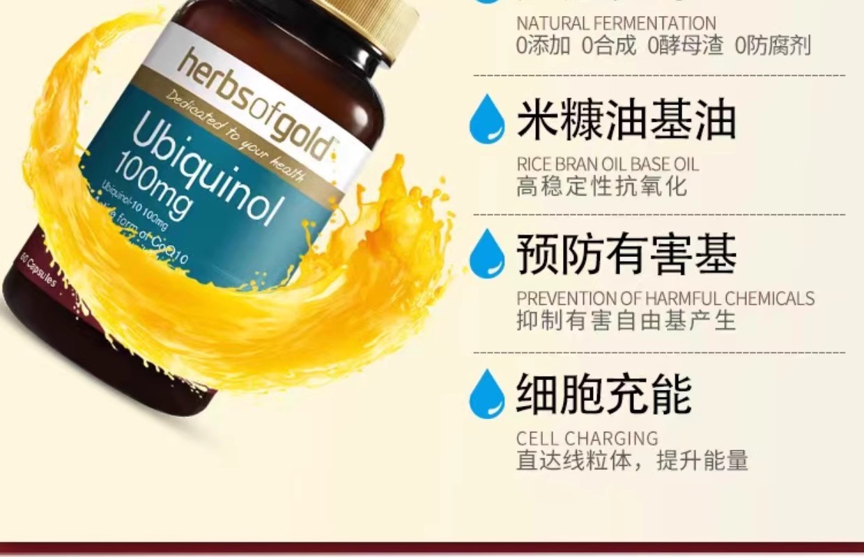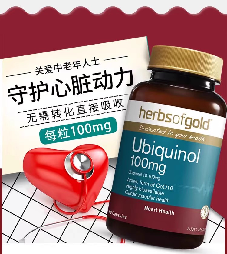 Herbs of Gold 泛醇100mg(活性辅酶Q10)胶囊 60粒