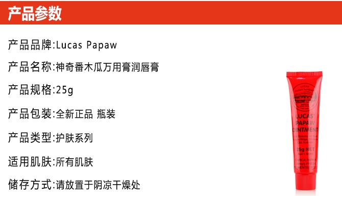 | 产品名 | Lucas Papaw 神奇番木瓜 万用膏润唇膏 25g |