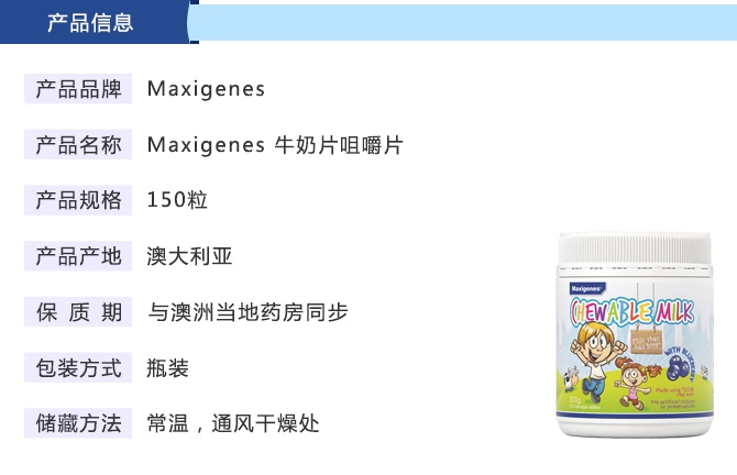 Maxigenes 美可卓蓝莓味咀嚼奶片护眼补钙 150粒