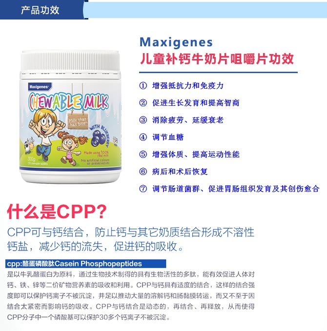 全天然无添加的商品,眼睛作为人们心灵的窗口,是我们最需要重视和保护的。本款产品既对宝宝的眼睛健康有帮助,又可以为宝宝补充身体所需的钙质,这一款儿童比较喜爱的奶片,成人也可以服用,蓝莓含有极为丰富的黄酮类和多糖类化合物等,具有对抗视力退化及抗动脉硬化和血栓形成的作用;增强脑力;可以强化视力,减轻眼球疲劳;还有一定的抗癌作用。