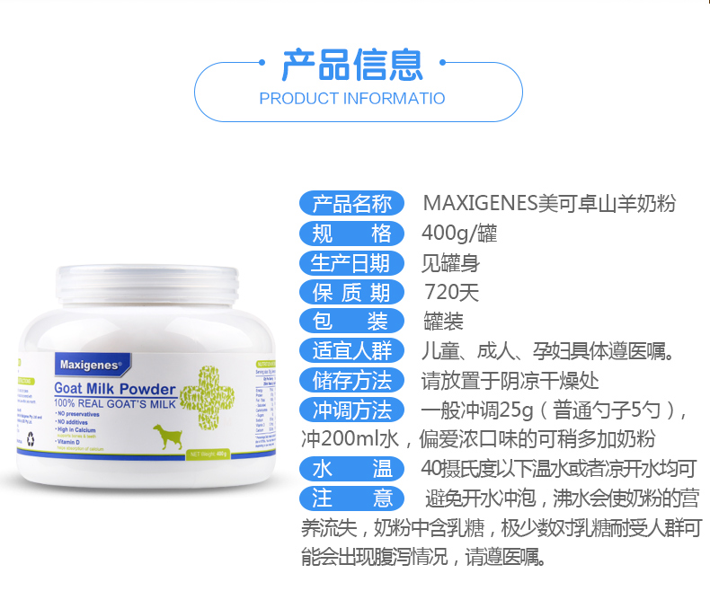 Maxigenes Goat Milk Powder 美可卓成人羊奶粉 400g