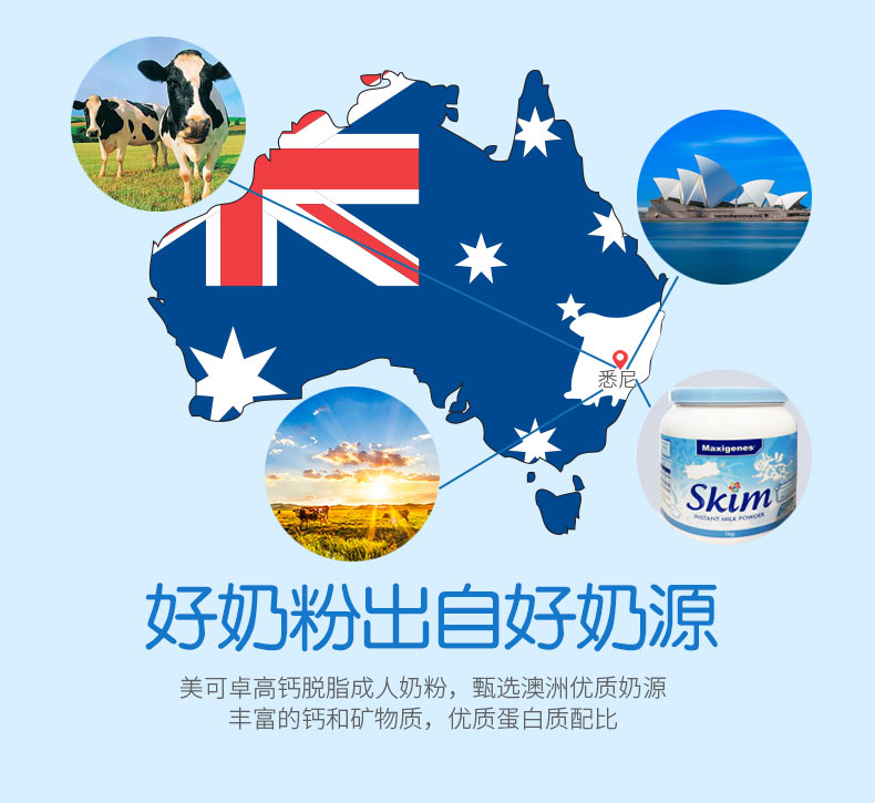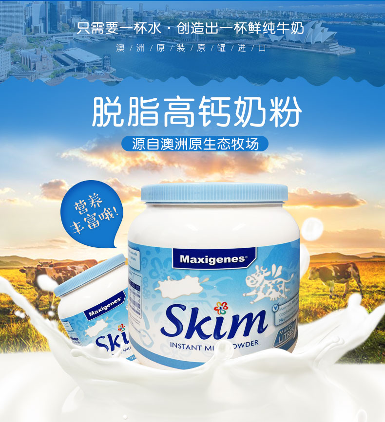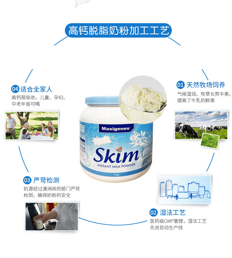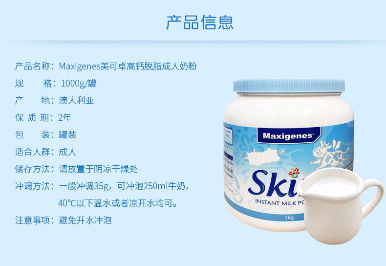 Maxigenes美可卓蓝胖子脱脂成人奶粉罐装1kg