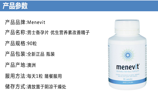 | 产品名 | Menevit 爱乐维 男性备孕胶囊营养 提高精子活力 90粒 |