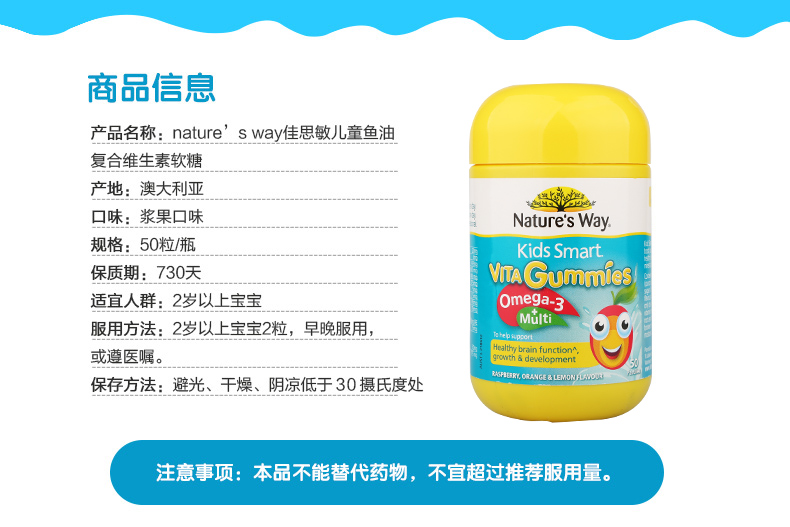 | 产品名 | Nature's Way 佳思敏儿童Omega-3 复合维生素鱼油软糖 50粒 |
