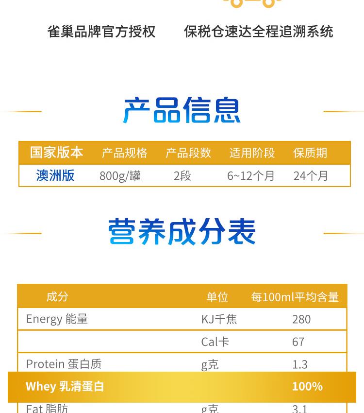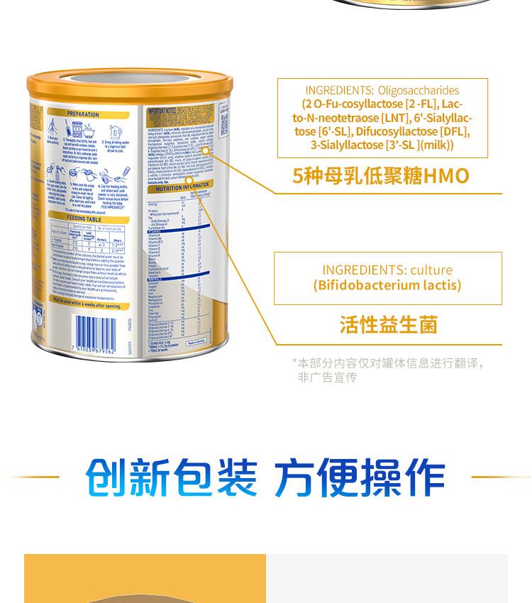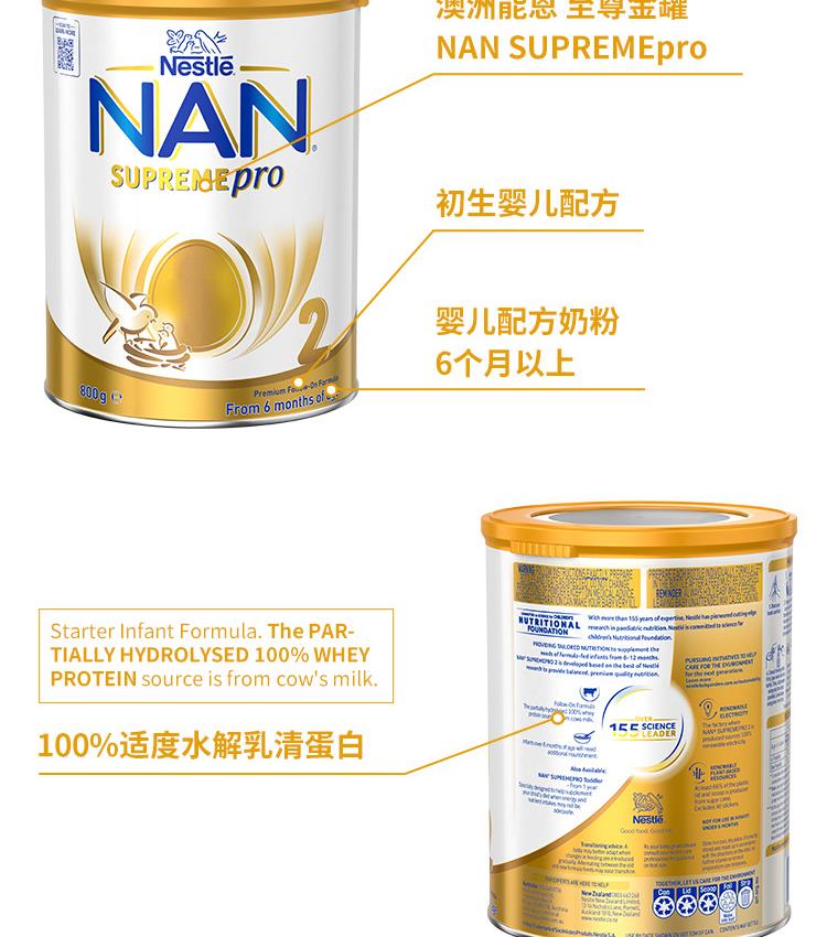 Nestle NAN HA 雀巢超级能恩金盾奶粉2段(6个月以上)口感清淡,奶味香醇,宝宝爱喝且不易上火。是专为6个月以上婴儿的营养需要而特殊调配的适度水解蛋白配方奶粉,富含乳清蛋白,维生素和矿物质,均衡比例的DHA和ARA并添加BL益生菌。全面为宝宝建立自身免疫系统提供帮助,让宝宝拥有更强免疫力,促进宝宝大脑、视力、消化系统和神经系统的健康生长发育,让宝宝拥有好眼力,好脑袋,好身体。