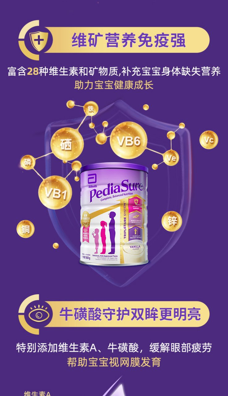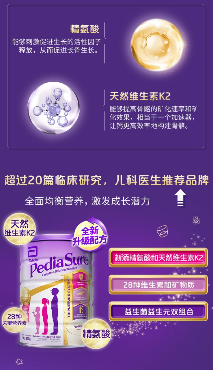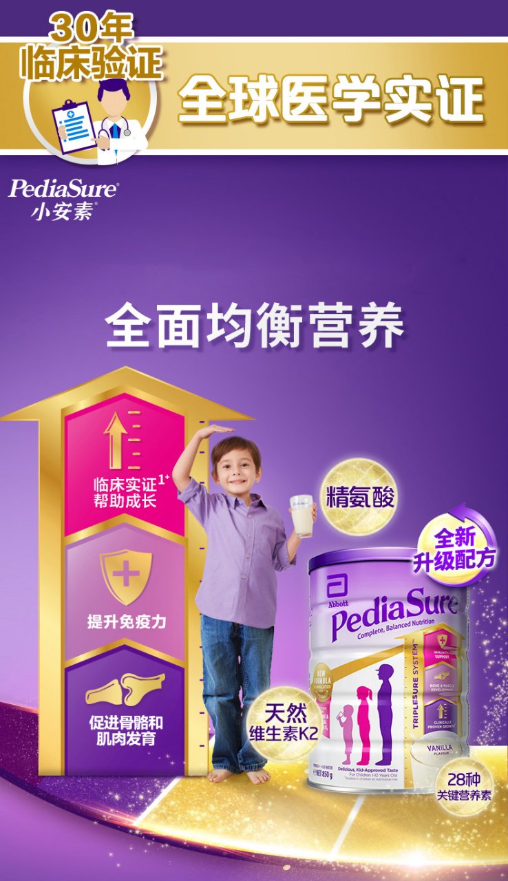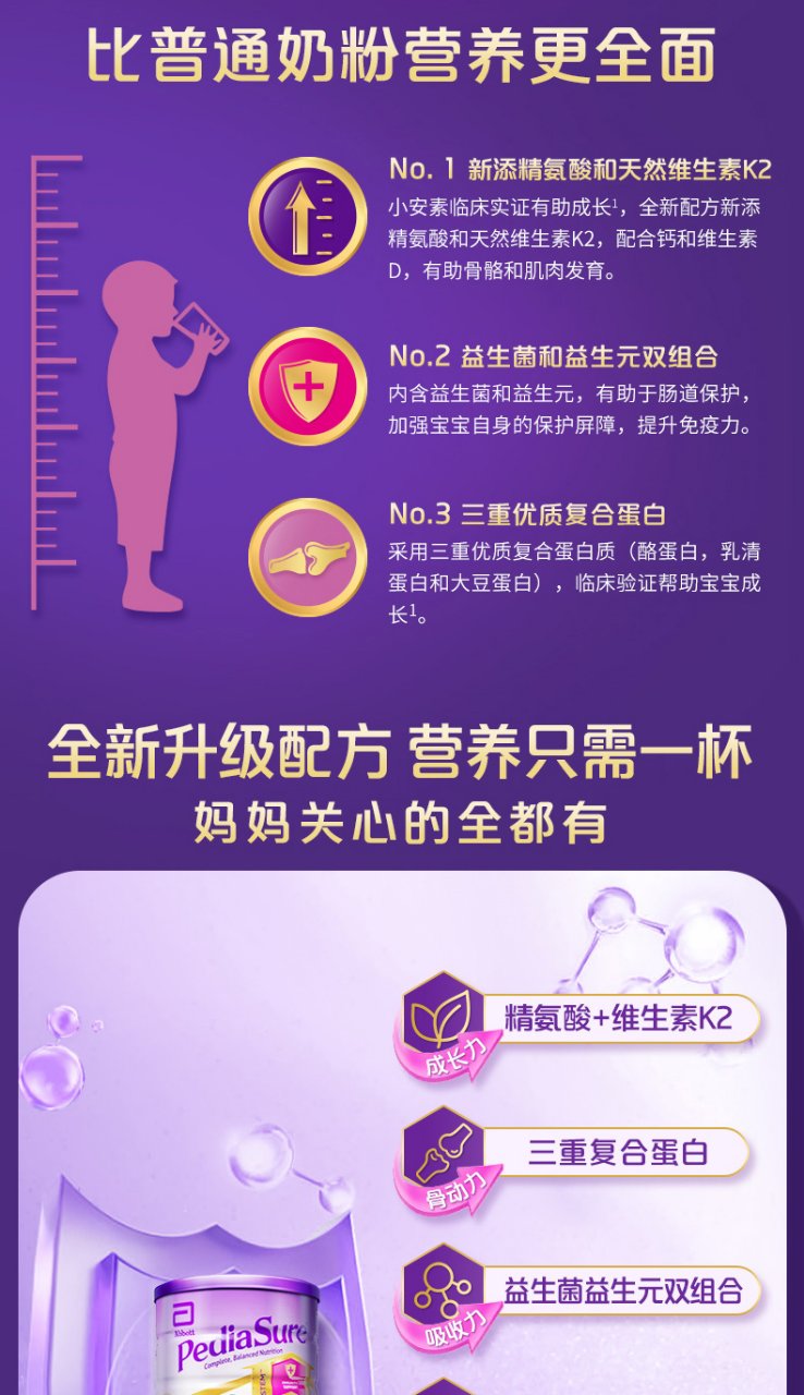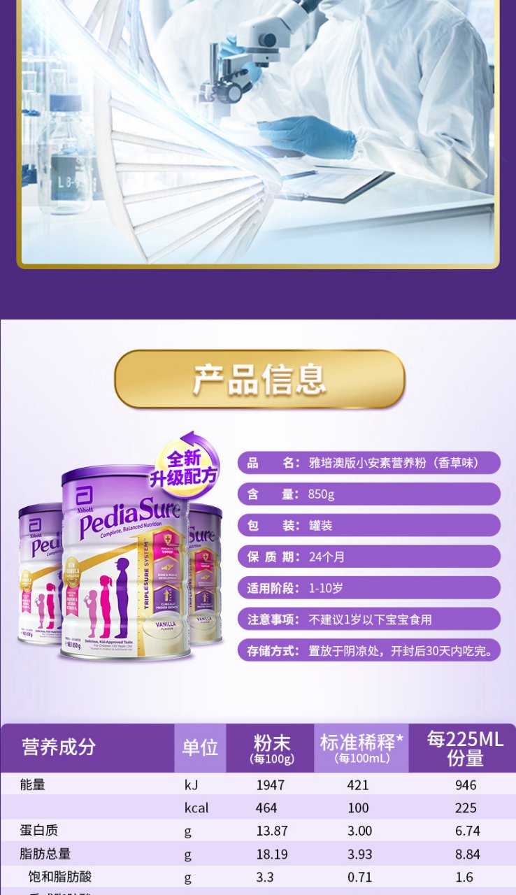PediaSure 雅培小安素奶粉香草味 850g(送气柱)新版