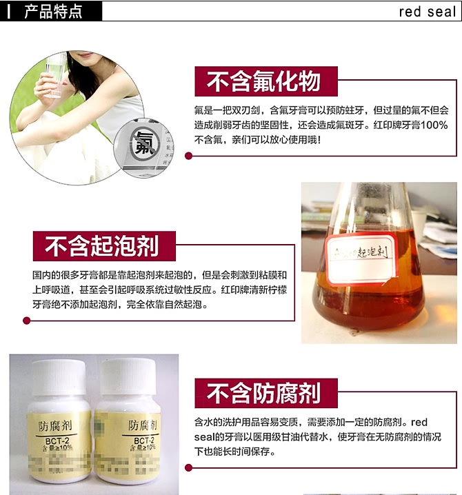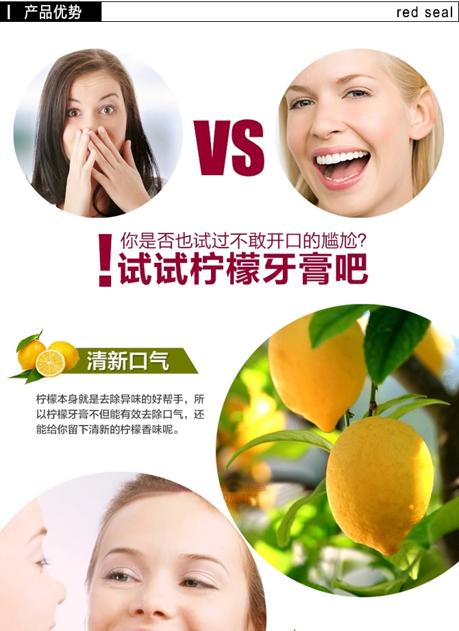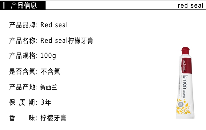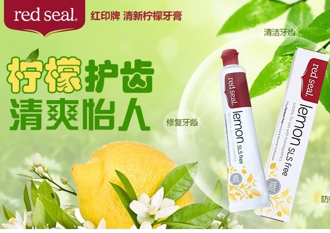 Red seal 红印 清新柠檬牙膏 清新口气/防蛀固齿 100g