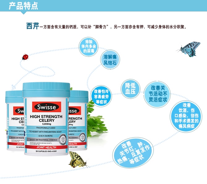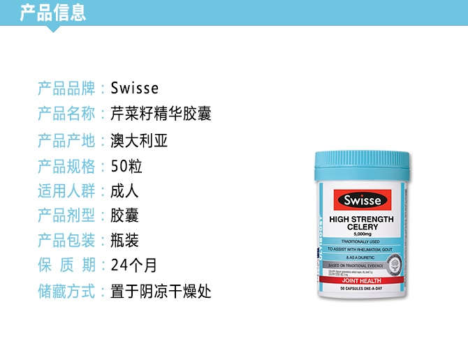 | 产品名 | Swisse 瑞思 芹菜籽胶囊 缓解痛风 5000mg 50粒 |