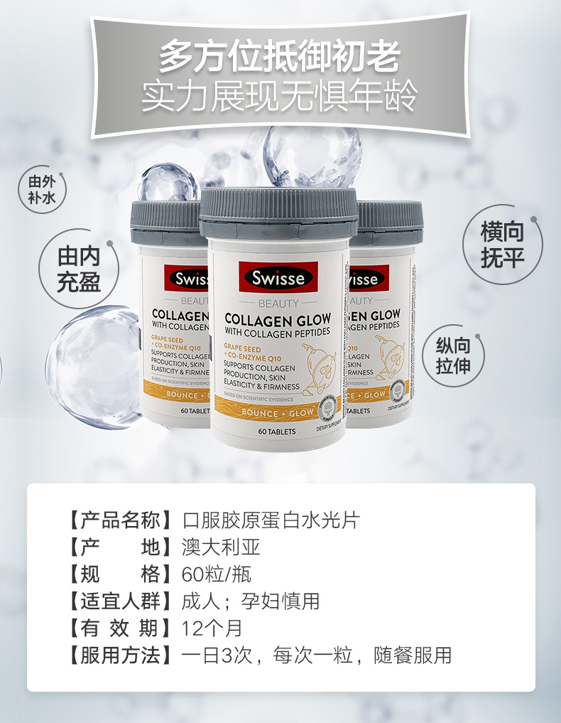 Swisse 胶原蛋白肽水光片 60粒 紧致皮肤 加强弹性 亮泽肌肤