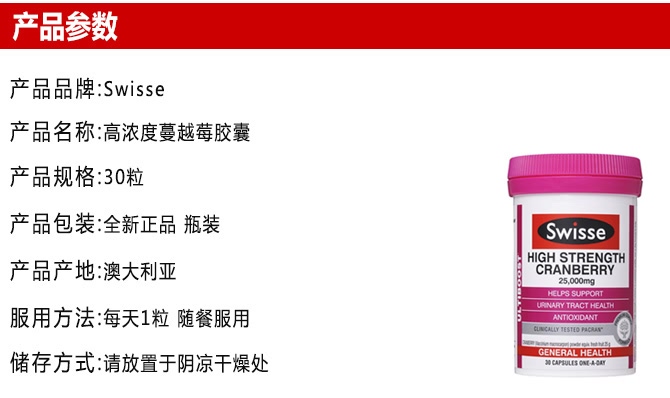 | 产品名 | Swisse 瑞思 高浓度蔓越莓胶囊 30粒 |