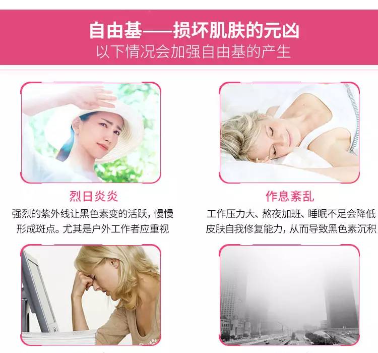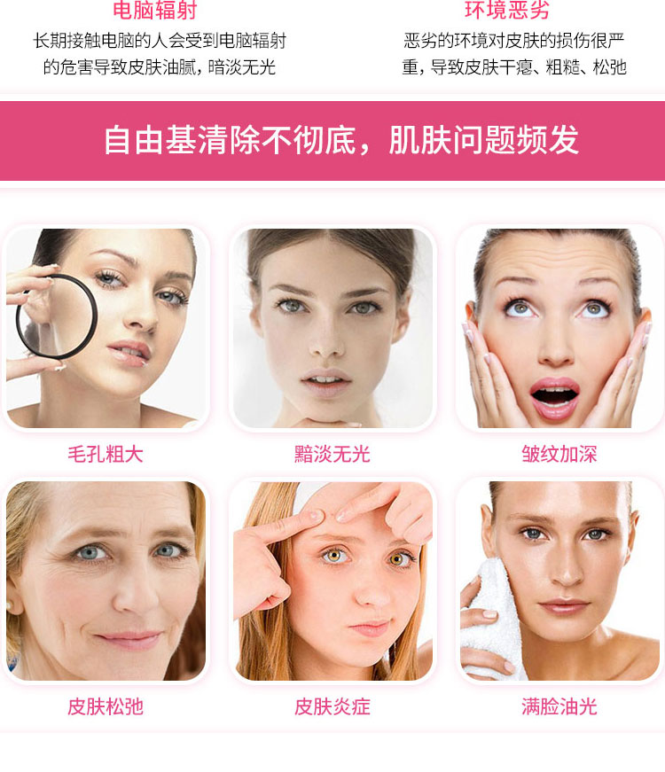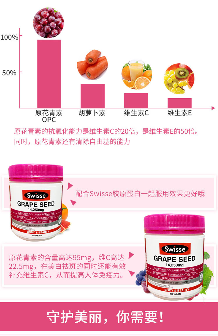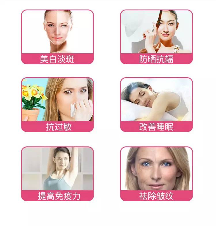 本产品葡萄籽中含有OPC-原花青素,是迄今为止发现的植物来源中最高的抗氧化剂,能够清楚体内大部分的自由基,并隔离污浊空气。本产品与维生素C和血橙支持胶原蛋白的形成与皮肤健康。提高机体免疫力,消除自由基,延缓衰老;抗氧化剂保持皮肤弹性,美白抗皱,淡化黑色素沉淀,祛斑;减轻过敏症状,如过敏性鼻炎、过敏性哮喘、皮肤过敏、花粉热等。