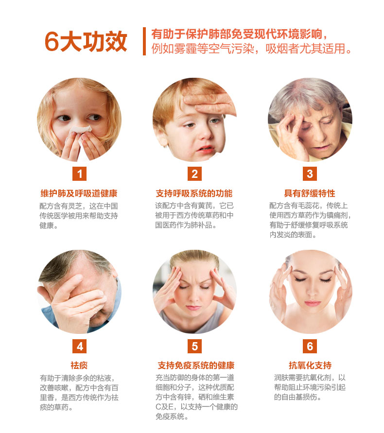 Swisse清肺片配方经过科学及传统医学验证,可提供综合配方针对现代环境影响帮助保护肺部健康。高端配方,富含草本精华,维他命和矿物质,支持肺部及呼吸系统健康,并帮助维护免疫系统健康。