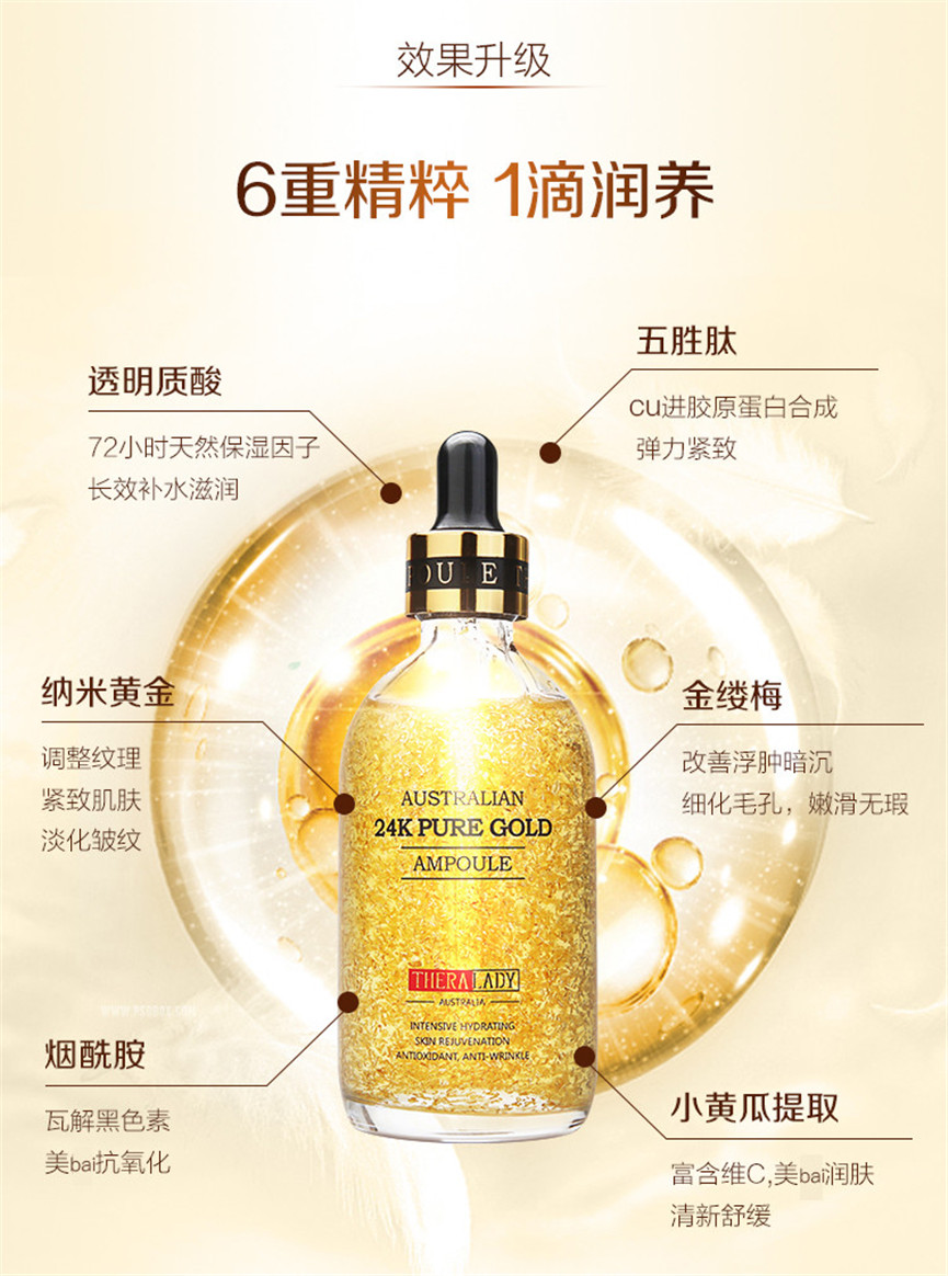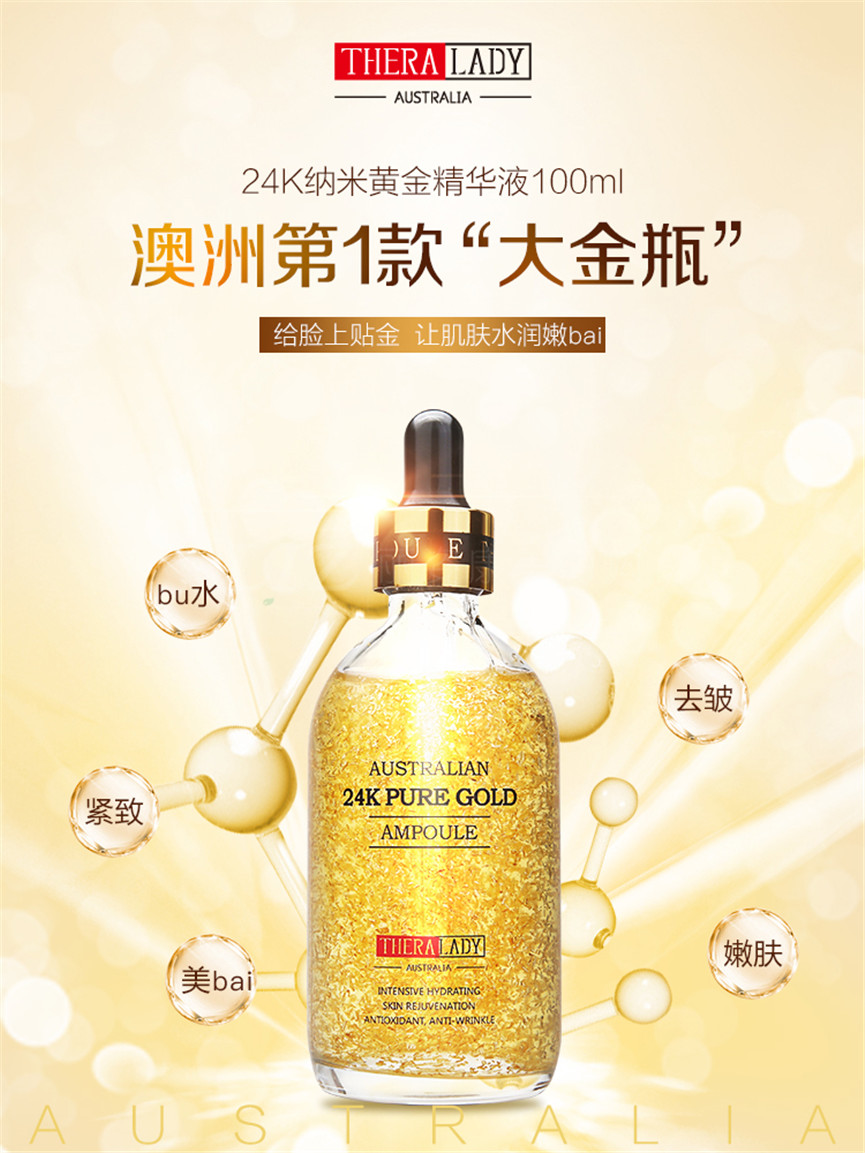 澳洲Thera lady大金瓶24K纳米黄金精华液紧致亮白收缩嫩肤100ml