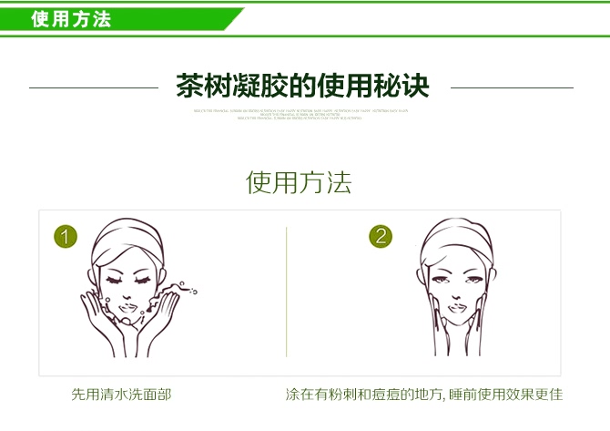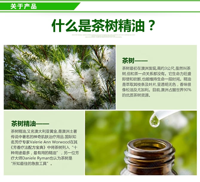 | 产品功效 | 这是一款祛痘明星产品,对暗疮,粉刺,黑头,白头等均有效。无色啫哩,清爽易干,不粘腻。纯天然茶树精油成份杀菌抑菌,防止痘痘感染留疤。 |