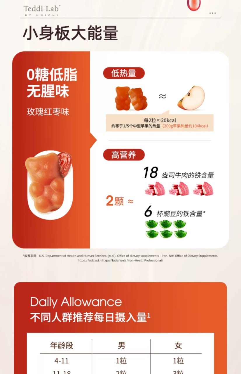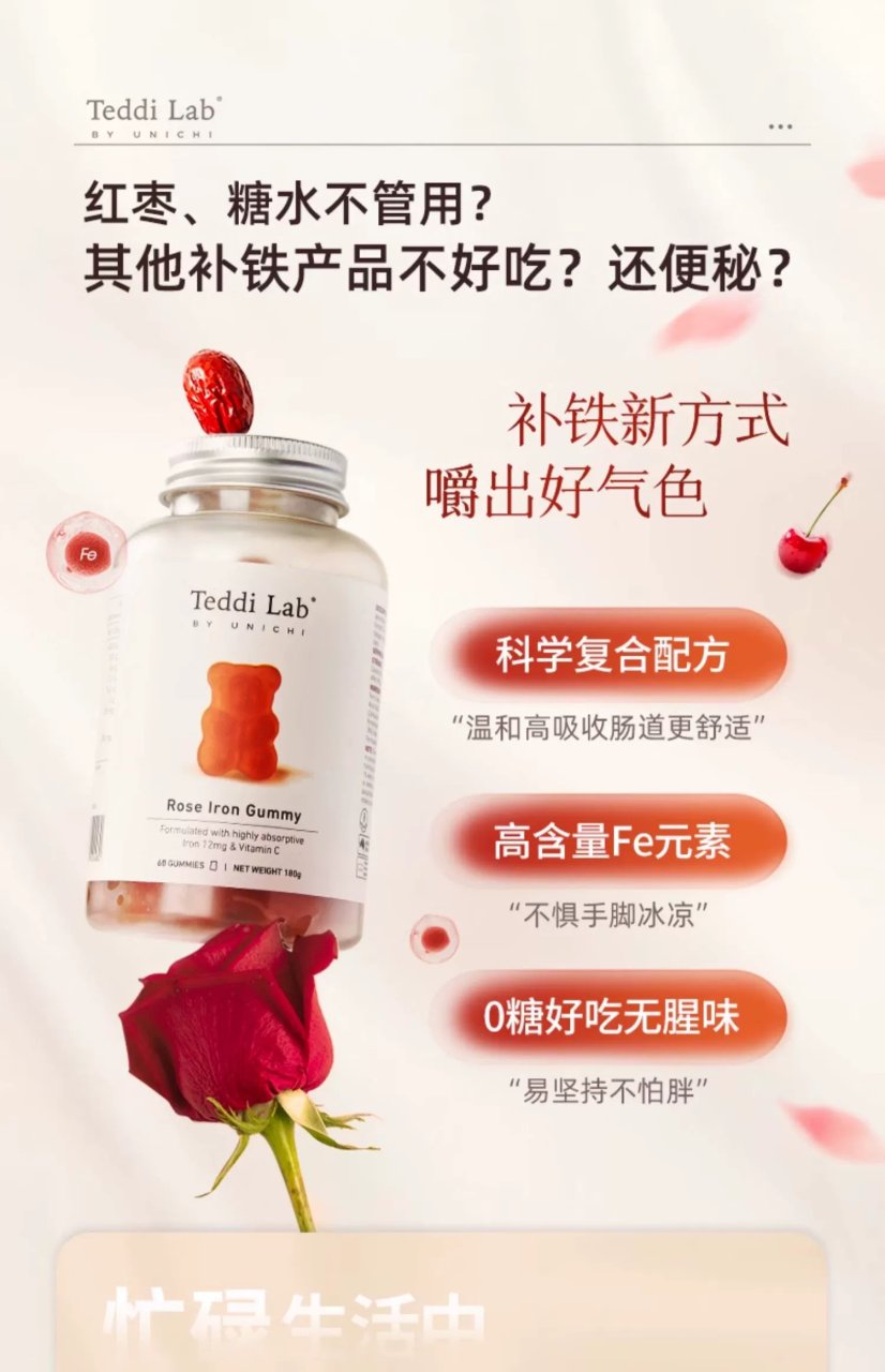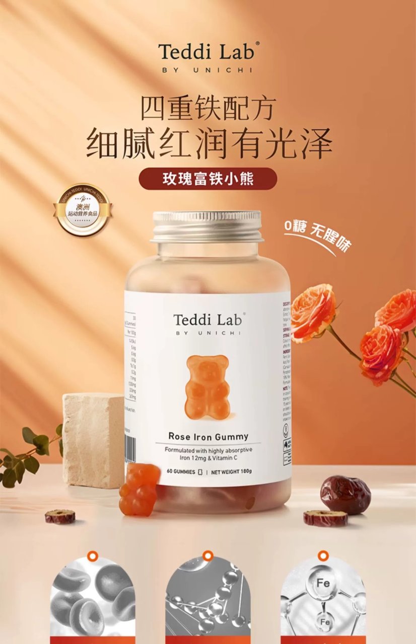 Unichi 玫瑰补铁小熊软糖 60粒