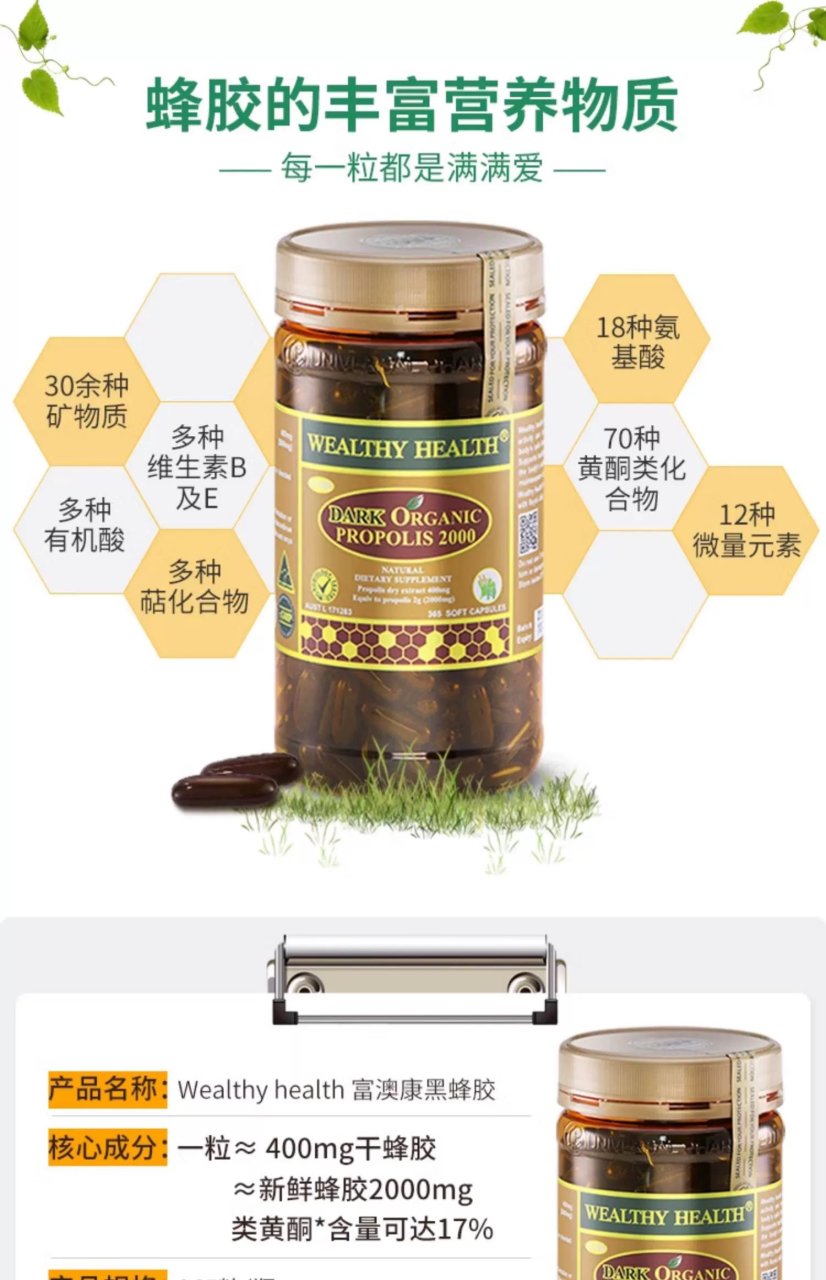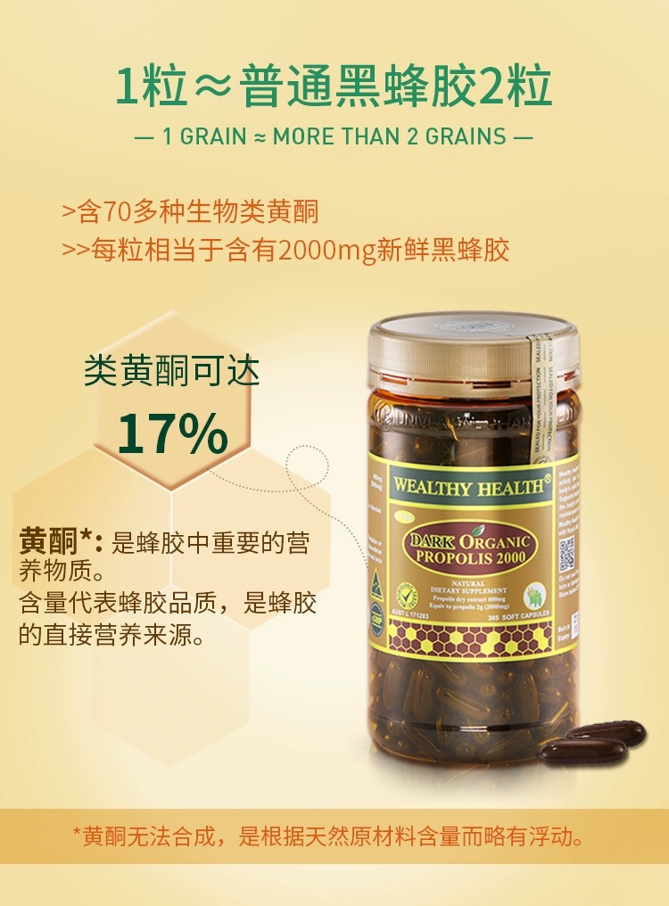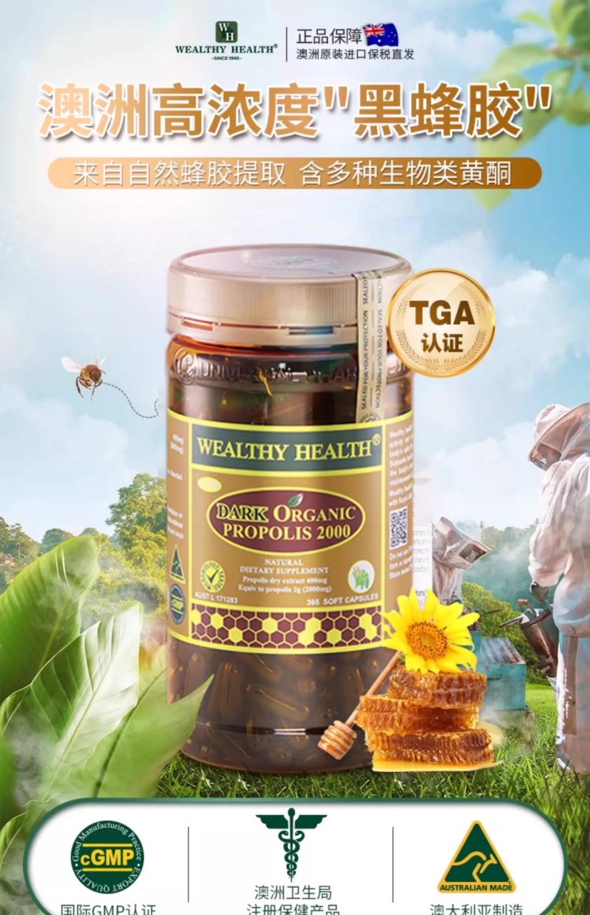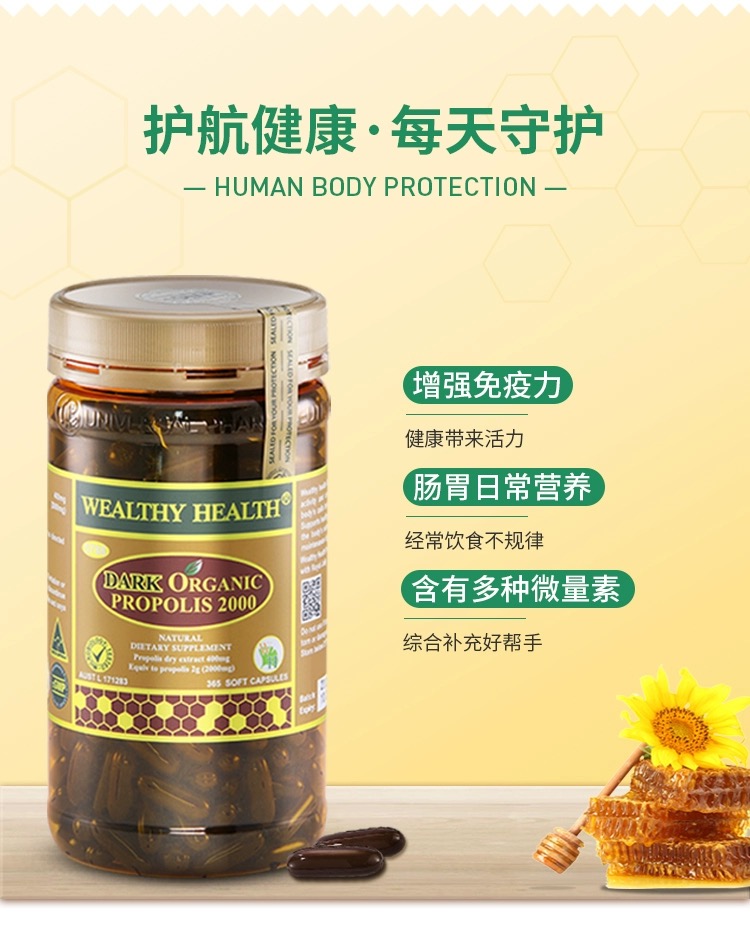 Wealthy Health 富康 天然有机黑蜂胶 2000mg 365粒